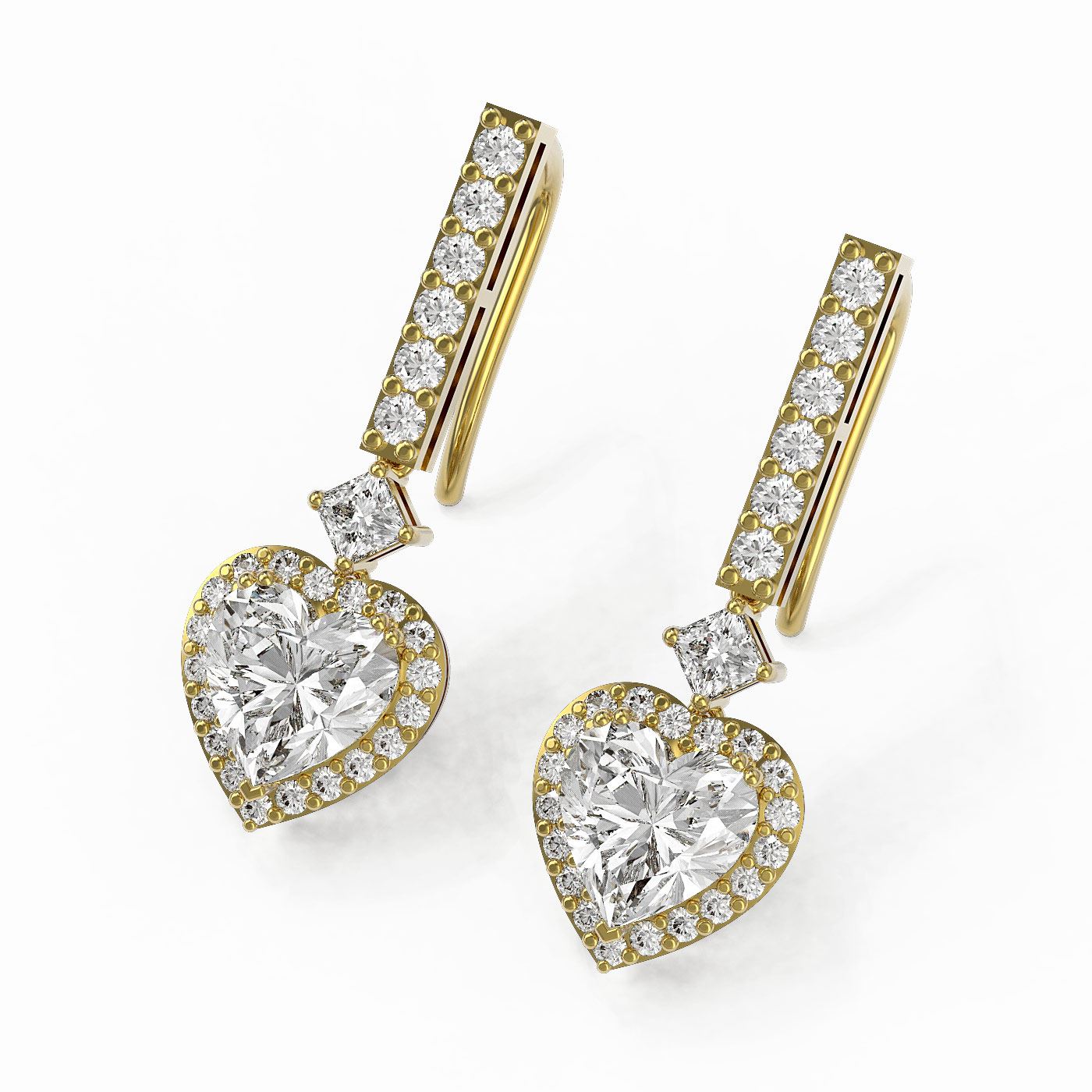 3 ctw Heart Diamond Designer Earrings 18K Yellow Gold