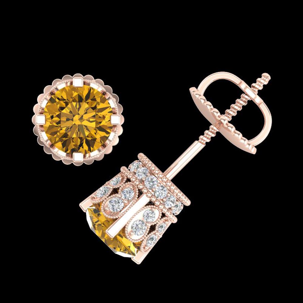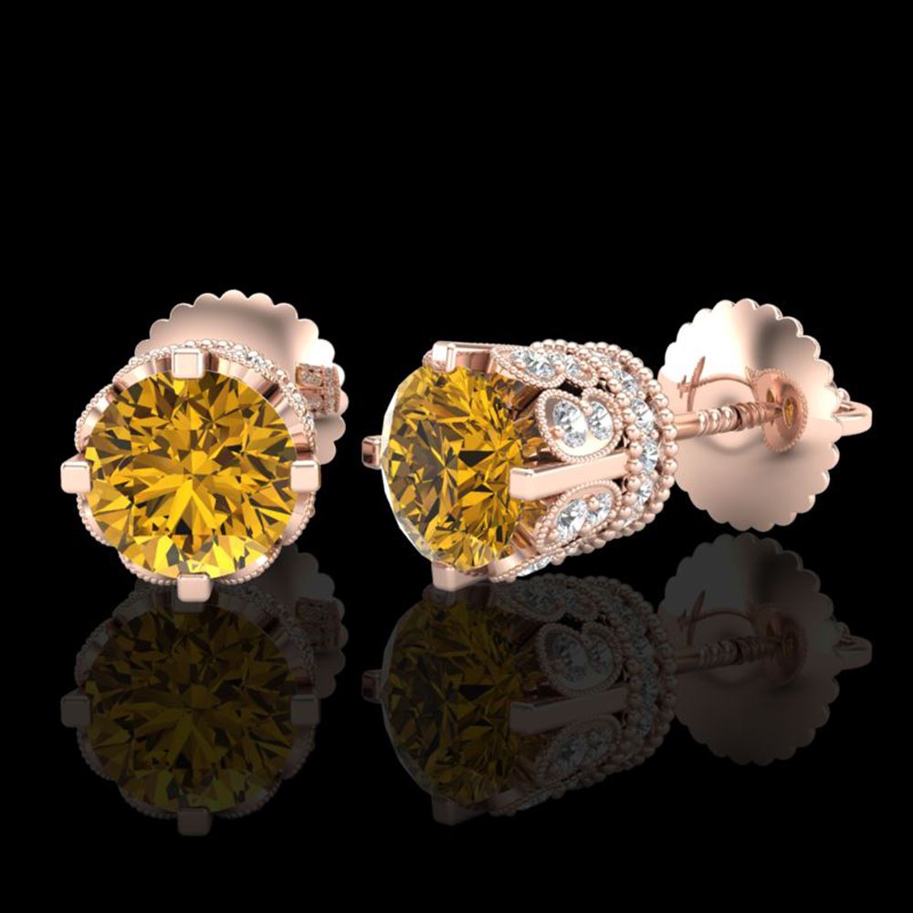 REF-349Y3X - SKU: 37365 ---- 3 ctw Intense Fancy Yellow Diamond Art Deco Earrings 18k Rose Gold