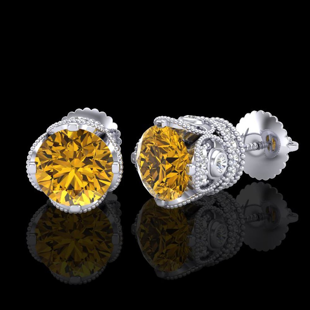 REF-636M4G - SKU: 37420 ---- 3 ctw Intense Fancy Yellow Diamond Art Deco Earrings 18k White Gold