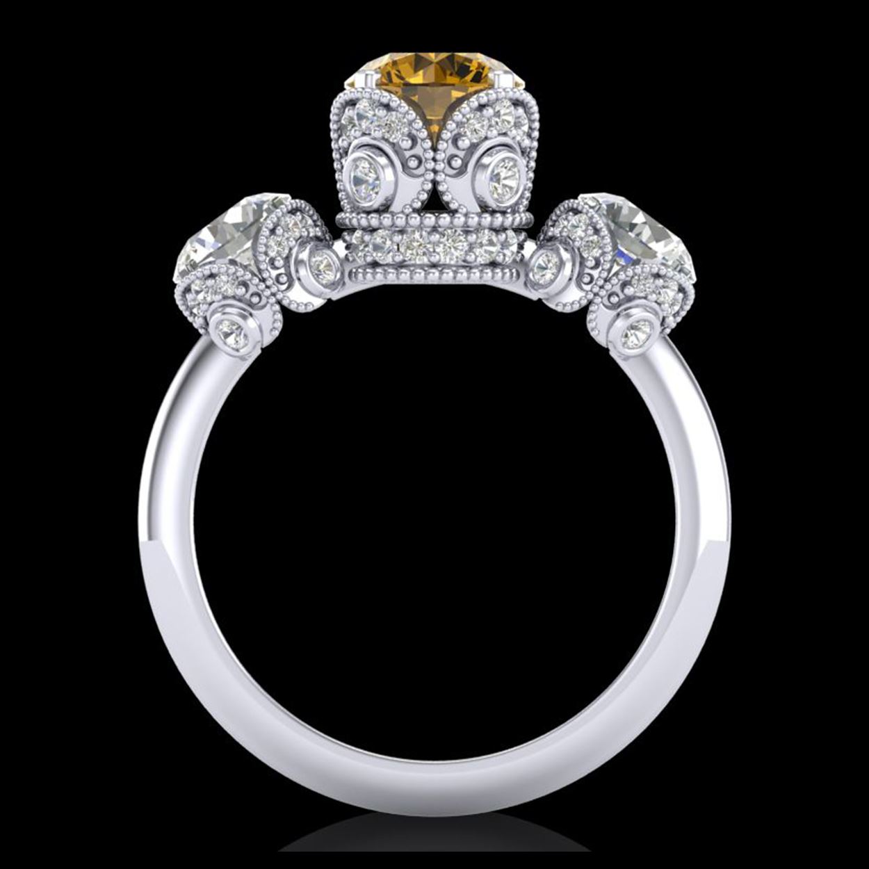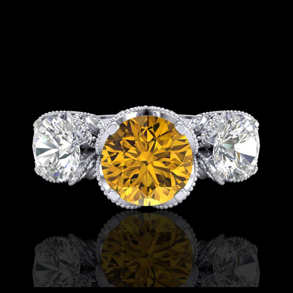 3 ctw Intense Yellow Diamond Art Deco 3 Stone Ring 18K White Gold
