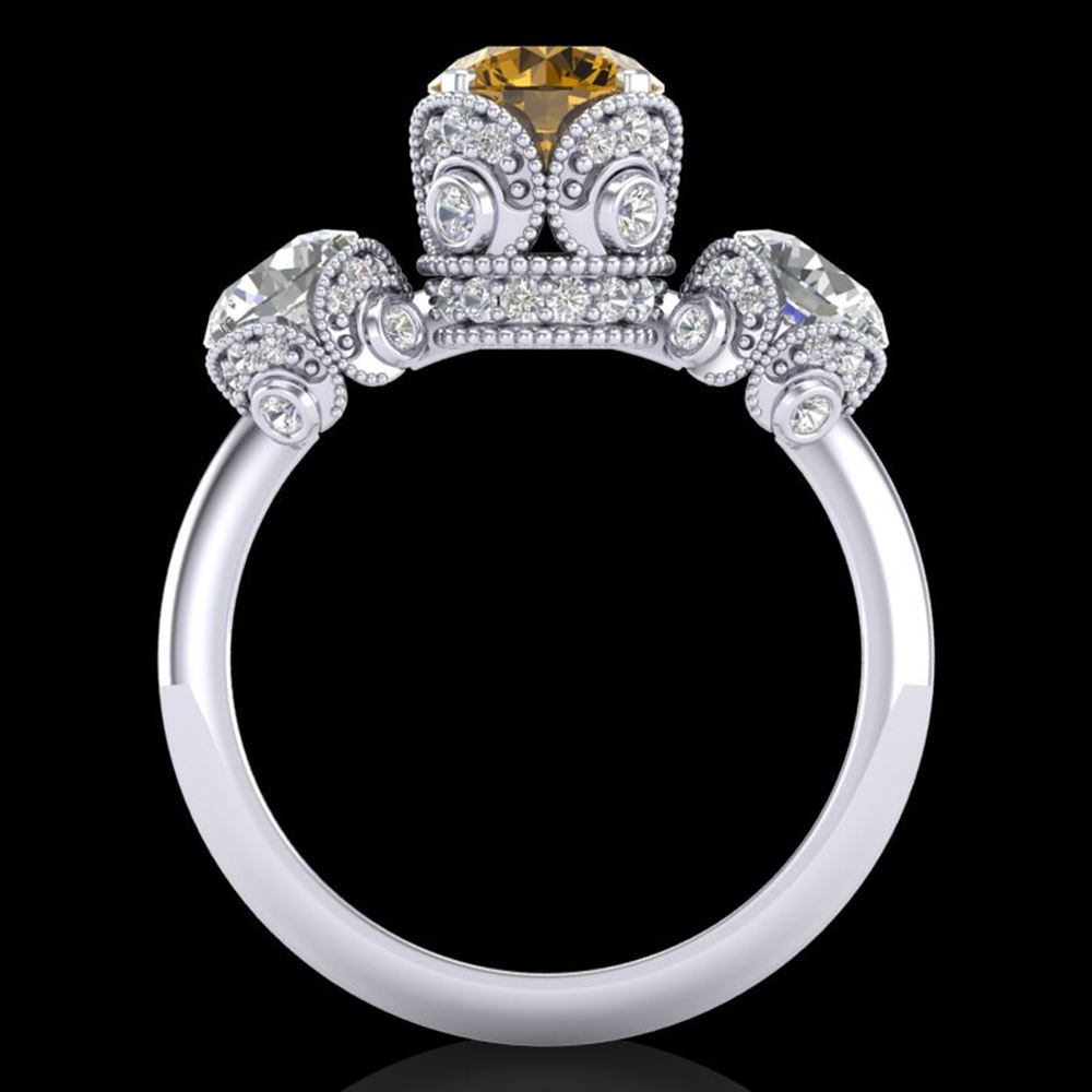 REF-470G9W - SKU: 37434 ---- 3 ctw Intense Yellow Diamond Art Deco 3 Stone Ring 18k White Gold