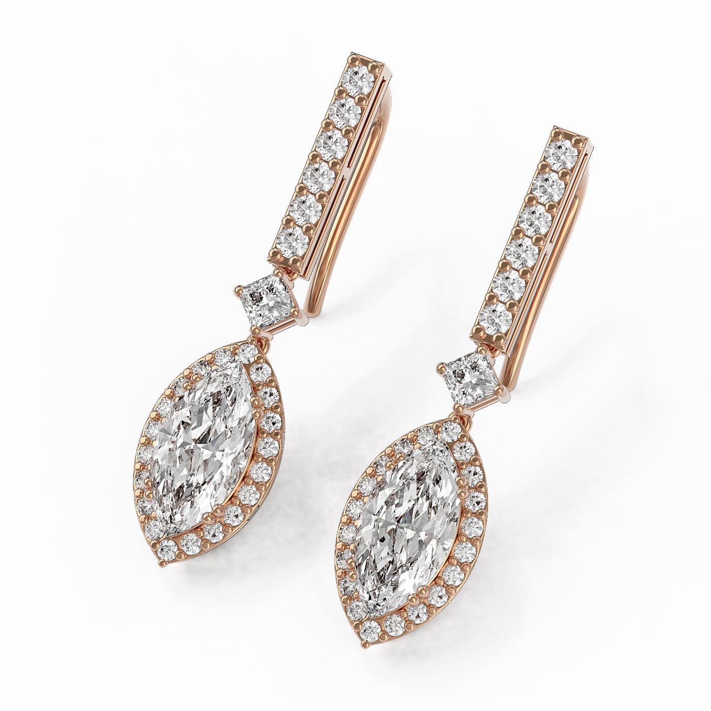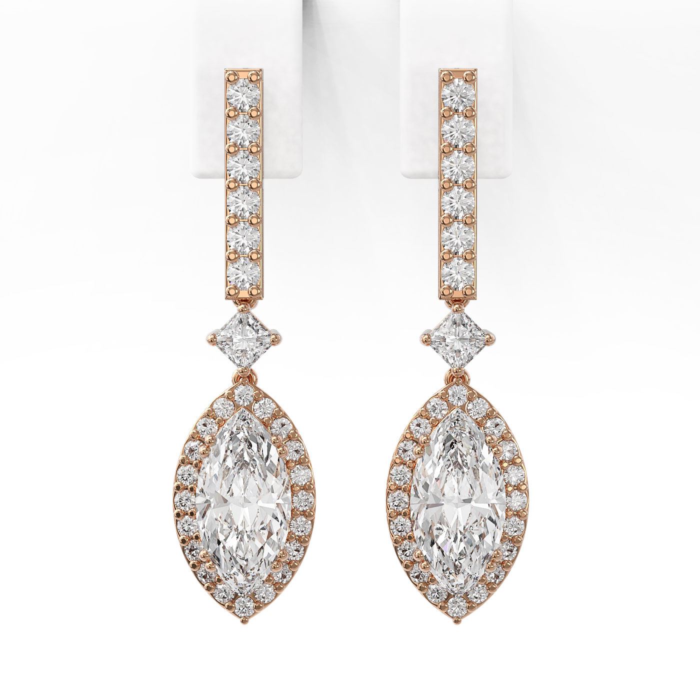 REF-618W8H - SKU: 49471 ---- 3 ctw Marquise Cut Diamond Designer Earrings 18K Rose Gold