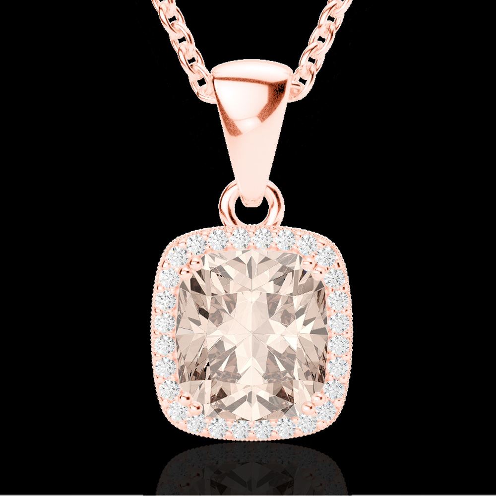 REF-81W8H - SKU: 22827 ---- 3 ctw Morganite & Micro VS/SI Diamond Pave Necklace 14k Rose Gold