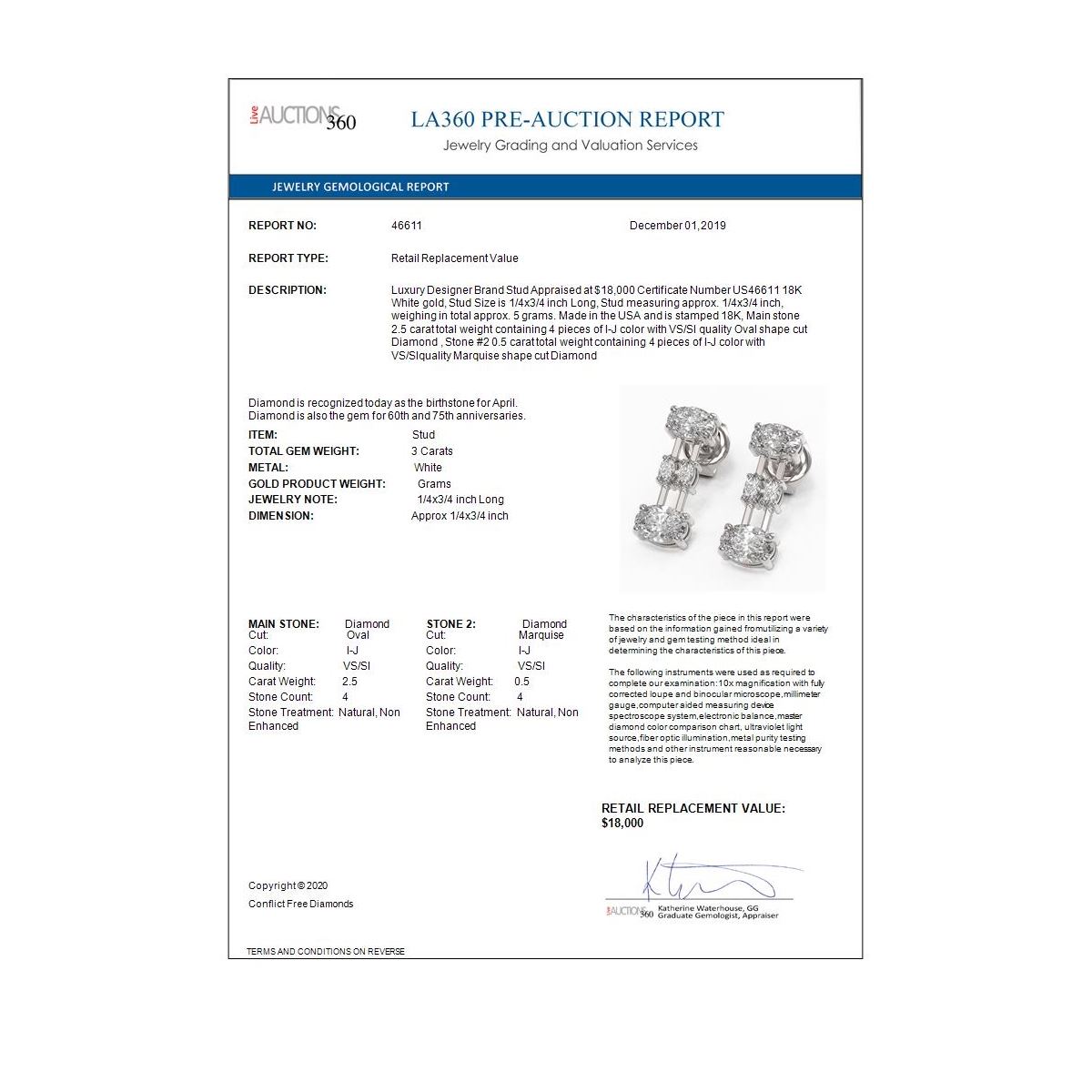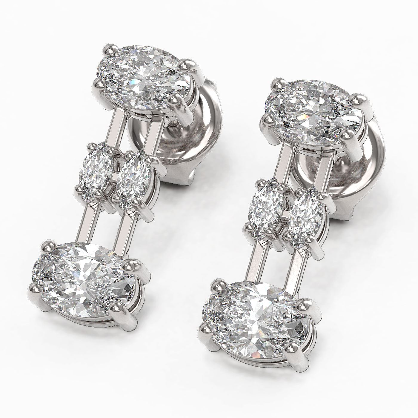 REF-450Y2X - SKU: 46611 ---- 3 ctw Oval & Marquise Cut Diamond Earrings 18K White Gold