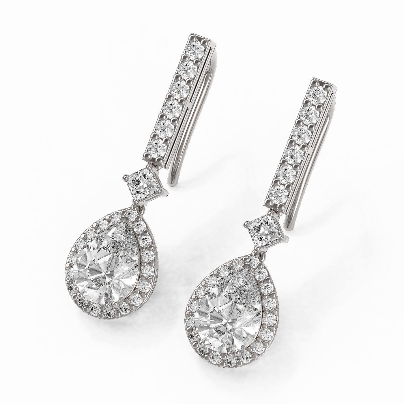 SKU: 49464 ---- 3 ctw Pear Cut Diamond Designer Earrings 18K White Gold