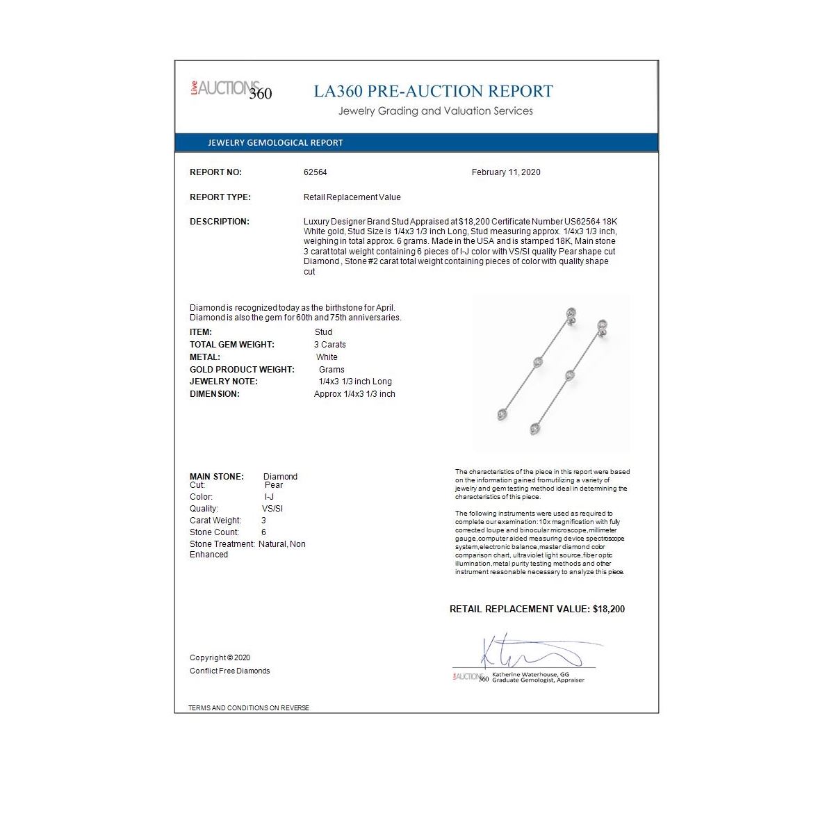 REF-482H4R - SKU: 62564 ---- 3 ctw Pear Cut Diamond Station Earrings 18K White Gold