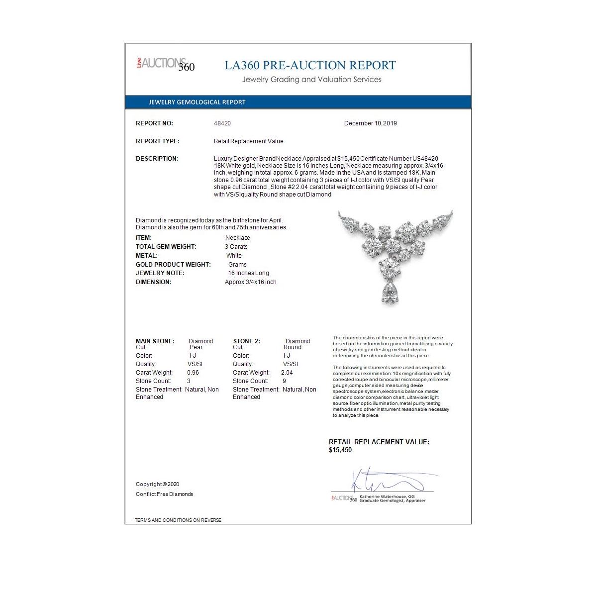 REF-468X5A - SKU: 48420 ---- 3 ctw Pear Diamond Designer Necklace 18K White Gold