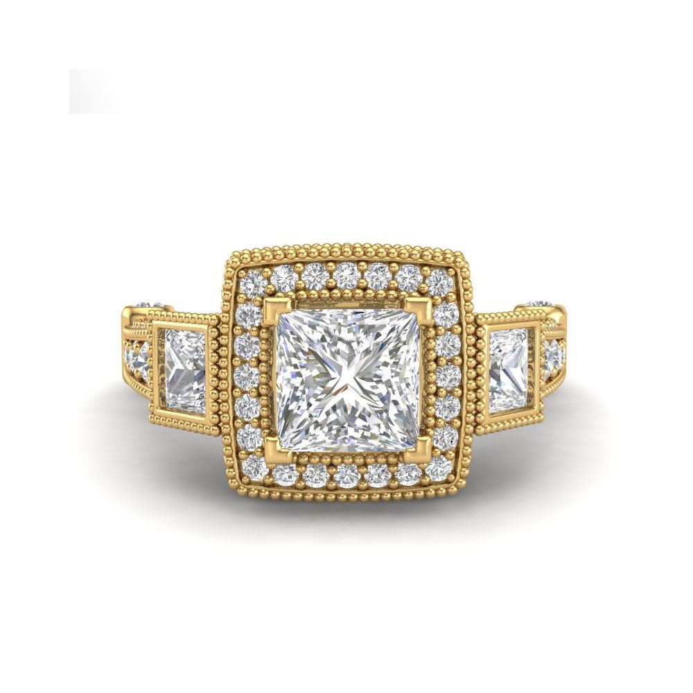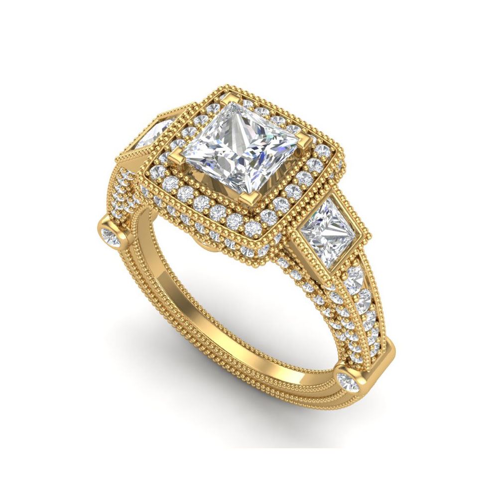 3 ctw Princess VS/SI Diamond Art Deco 3 Stone Ring 18K Yellow Gold