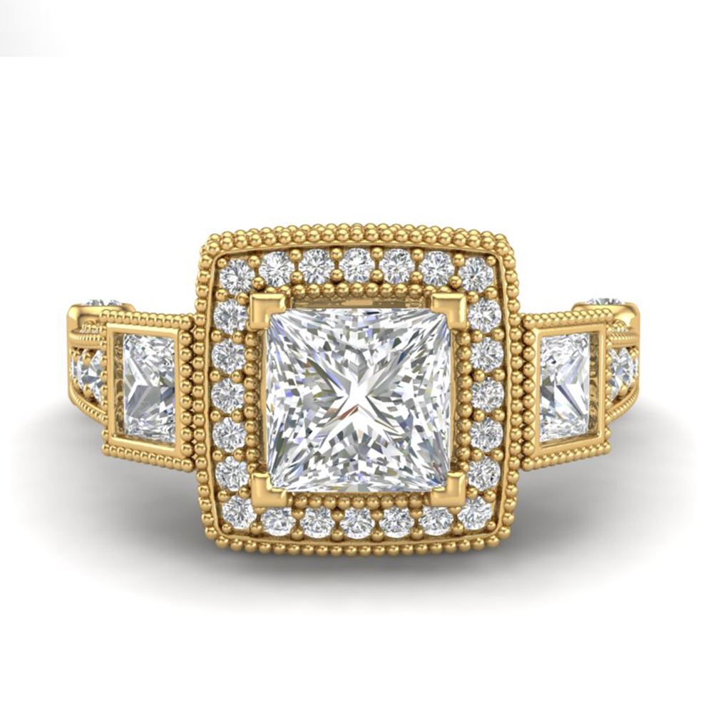 REF-563X6A - SKU: 37135 ---- 3 ctw Princess VS/SI Diamond Art Deco 3 Stone Ring 18k Yellow Gold