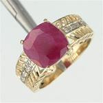 * Center Gem Type: Genuine Ruby * Center Gem Cut: 10 x 10 mm Cushion Cut * Accent Gem Type: 8 Genuine Diamonds * Accent Gem Cut: Round Full Cut * 100% Genuine Natural Diamonds * Metal Type: Solid Yellow Gold * Metal stamp: 10K * "Solid 10k Gold" Ring Setting - "NOT" Plated Base Metals * Size: 7.5