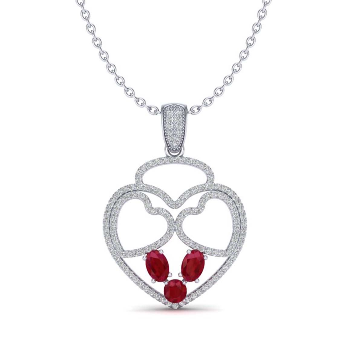 REF-134H5M - SKU:22541 ---- 3 ctw Ruby & Heart Necklace 14K White Gold