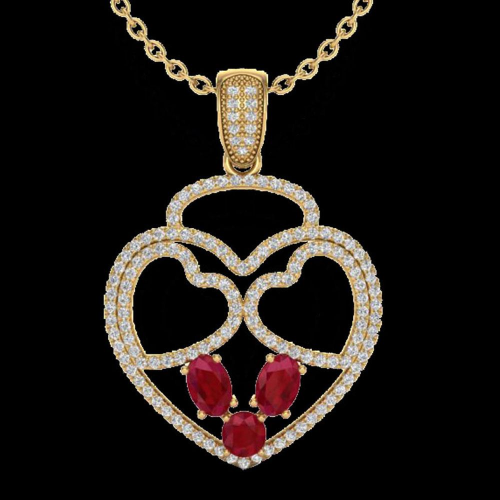 REF-134H5R - SKU: 22542 ---- 3 ctw Ruby & Micro Pave Designer Heart Necklace 14k Yellow Gold