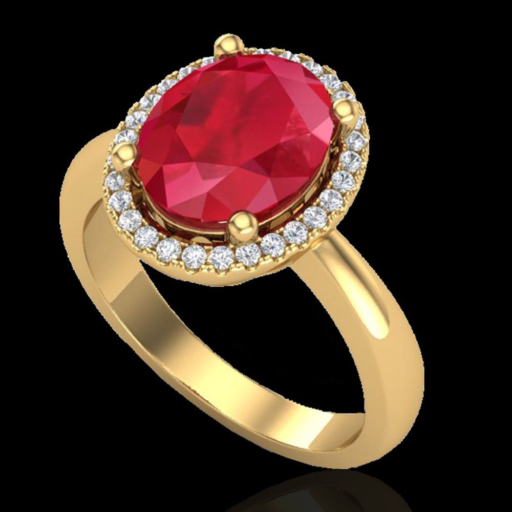 REF-50Y3X - SKU: 21113 ---- 3 ctw Ruby & Micro Pave VS/SI Diamond Certified Ring 18k Yellow Gold