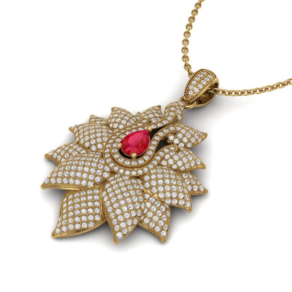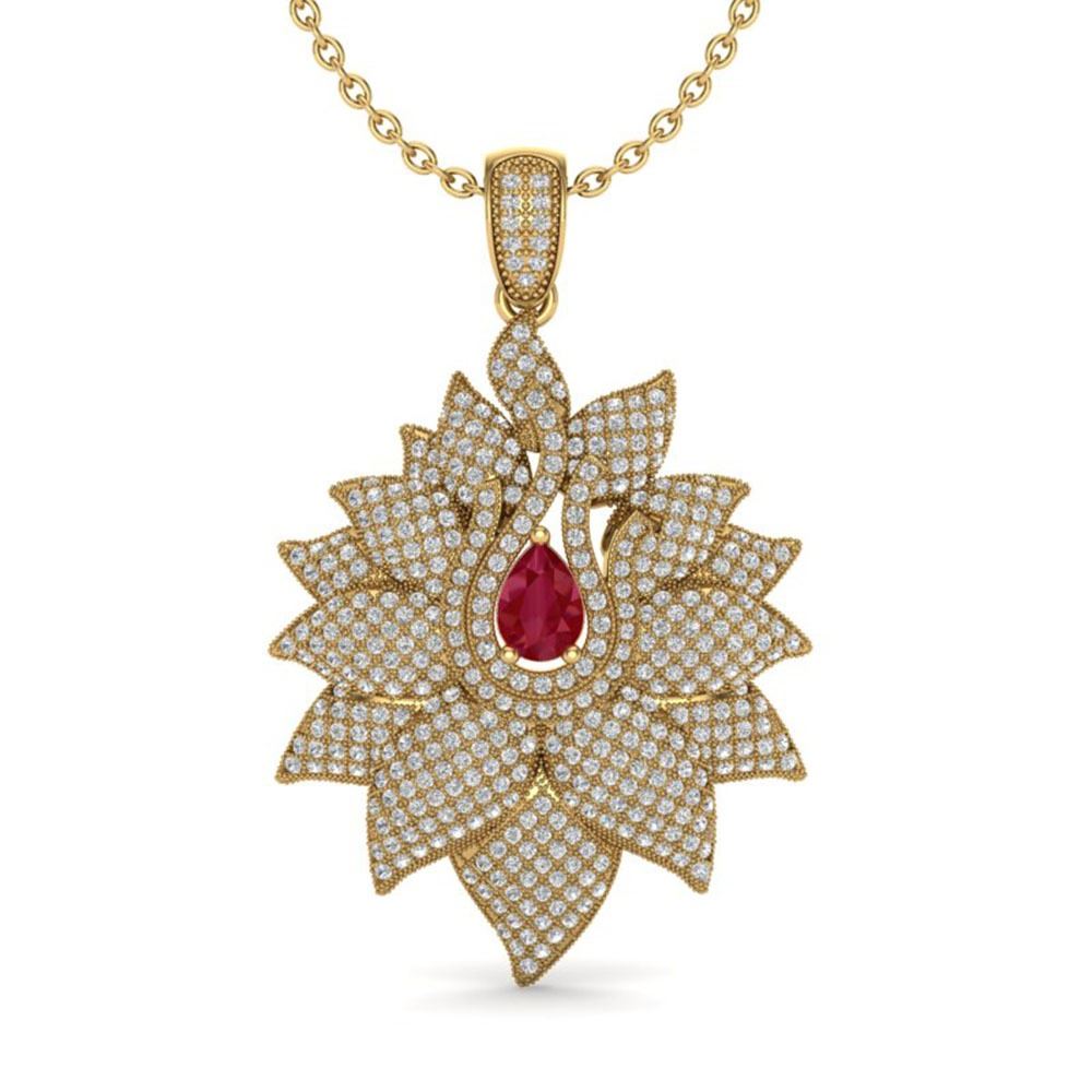 SKU: 22564 ---- 3 ctw Ruby & Micro Pave VS/SI Diamond Designer Necklace 18k Yellow Gold