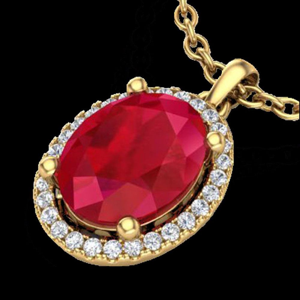 REF-45A9N - SKU: 21088 ---- 3 ctw Ruby & Micro Pave VS/SI Diamond Necklace 18k Yellow Gold
