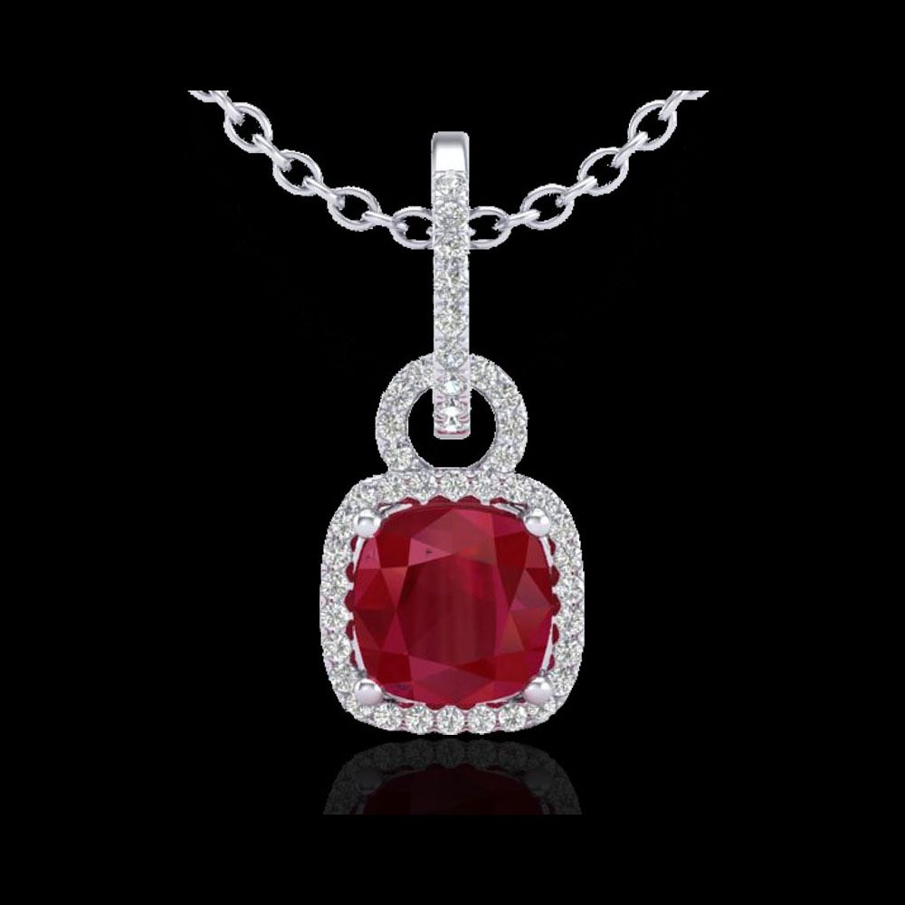 3 ctw Ruby & Micro VS/SI Diamond Certified Necklace 18K White Gold