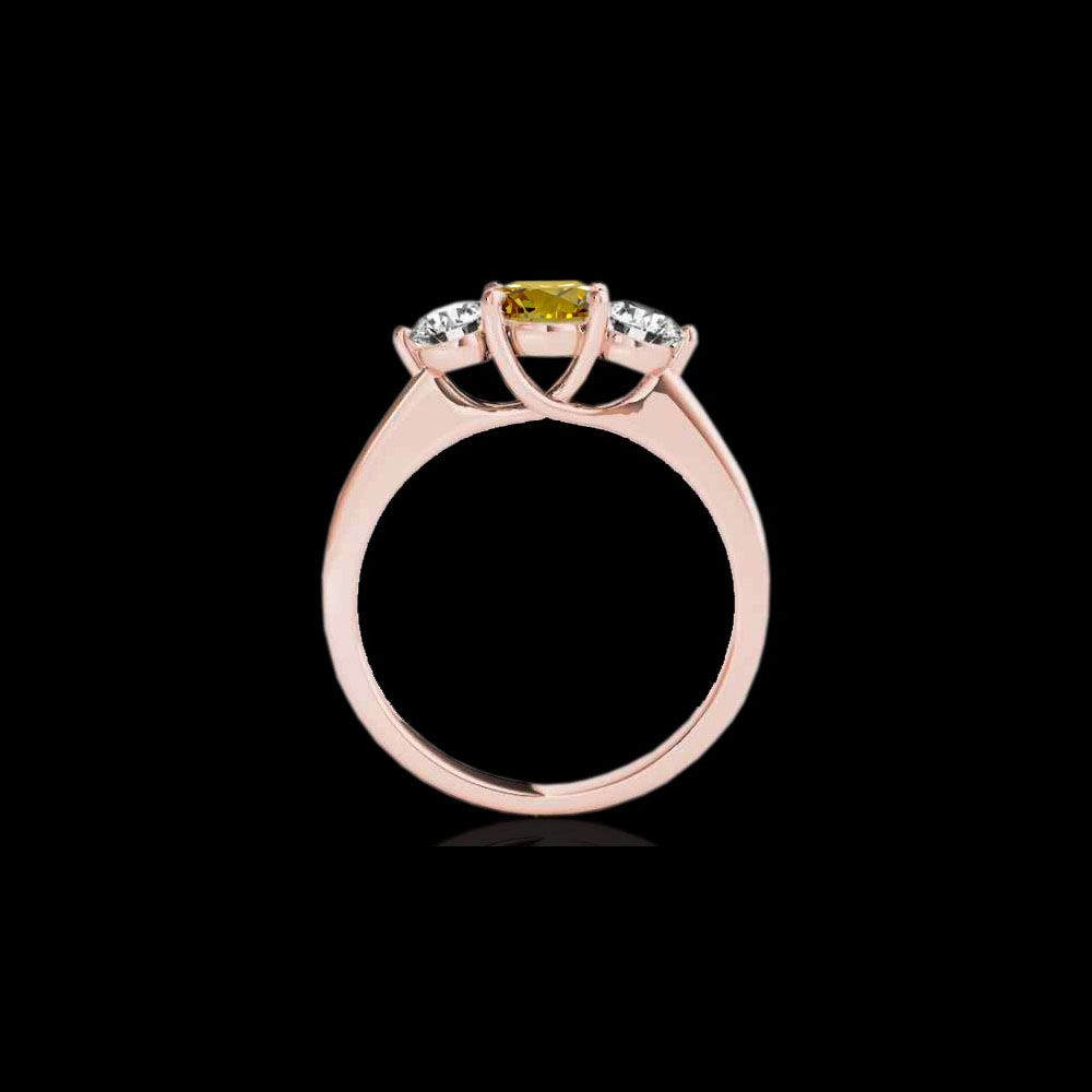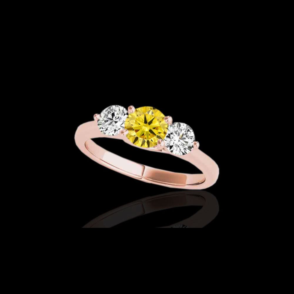 3 ctw SI/I Fancy Intense Yellow Diamond 3 Stone Ring 10K Rose Gold