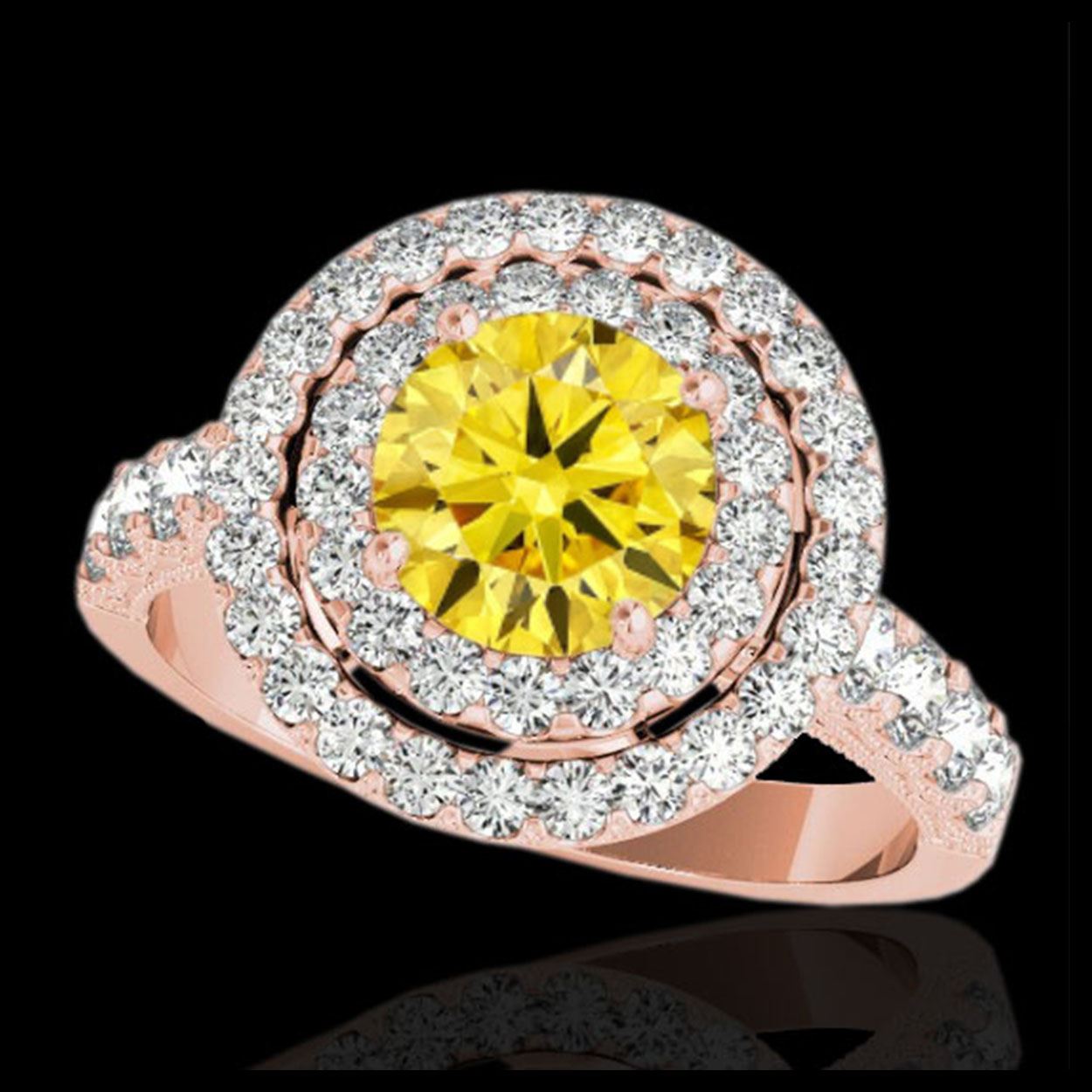 3 ctw SI/I Fancy Intense Yellow Diamond Halo Ring 10K Rose Gold
