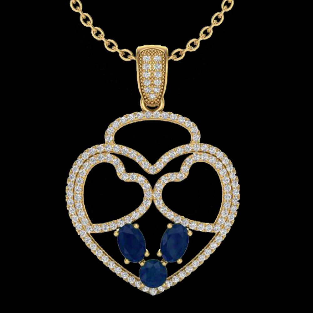 REF-134M5G - SKU: 22544 ---- 3 ctw Sapphire & Micro Pave Designer Heart Necklace 14k Yellow Gold