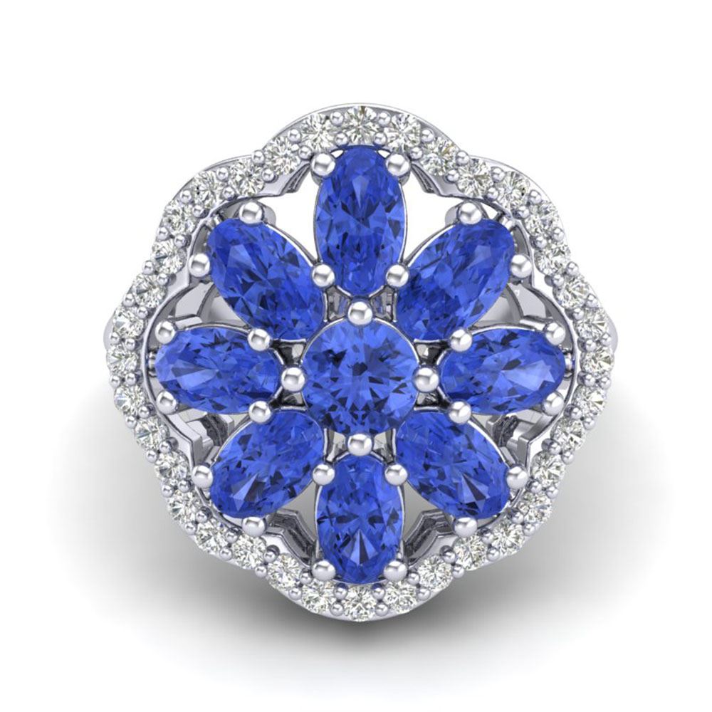 REF-52Y3X - SKU: 20789 ---- 3 ctw Tanzanite & VS/SI Diamond Cluster Designer Ring 10k White Gold