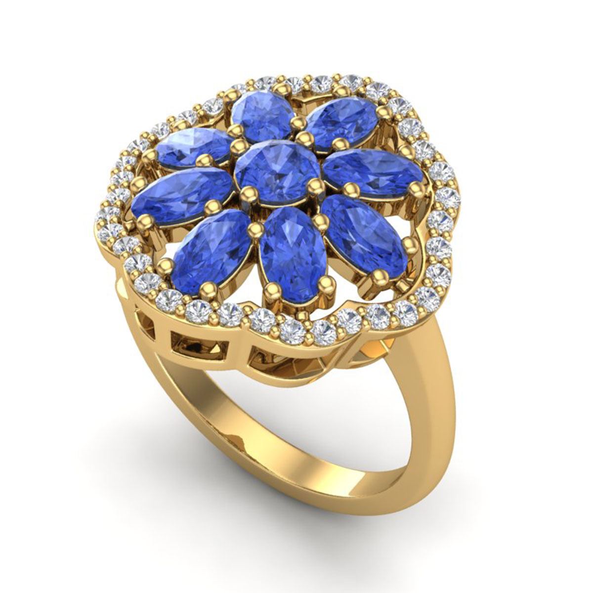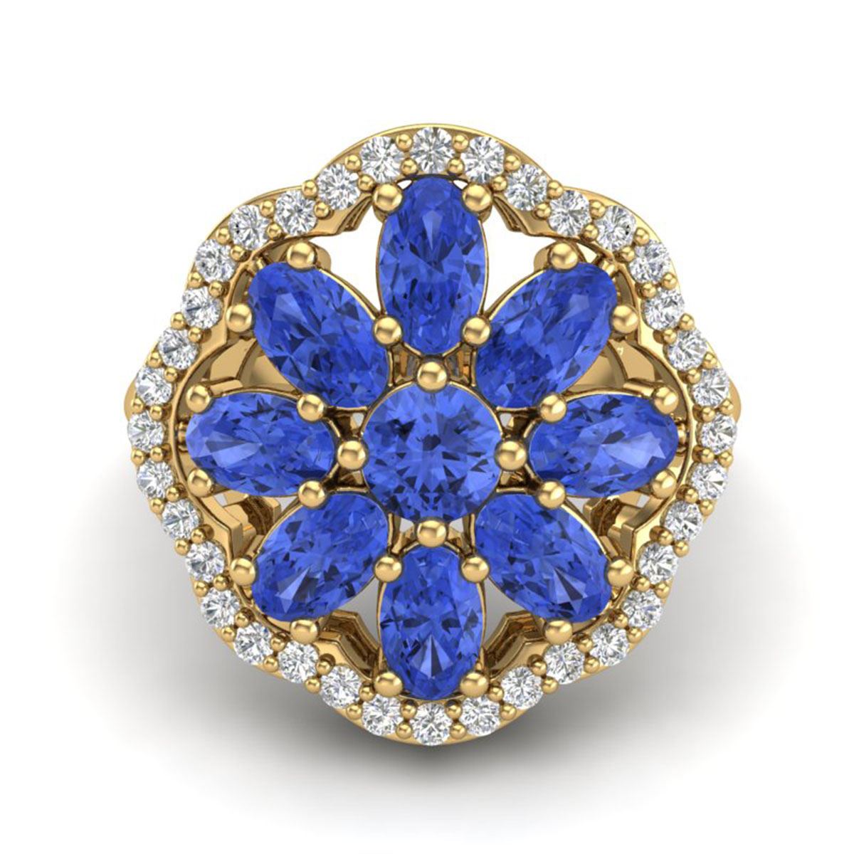 REF-67X5R - SKU:20790 ---- 3 ctw Tanzanite & VS/SI Diamond Cluster Ring 10K Yellow Gold