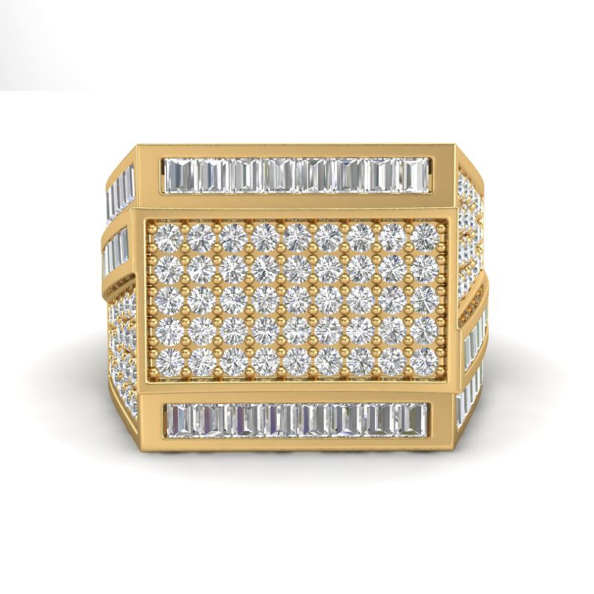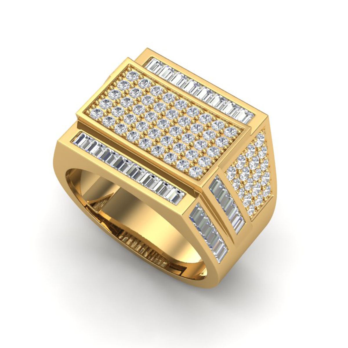 REF-220M2F - SKU:22593 ---- 3 ctw VS/SI Diamond Baguette & Round Men's Ring 14K Yellow Gold