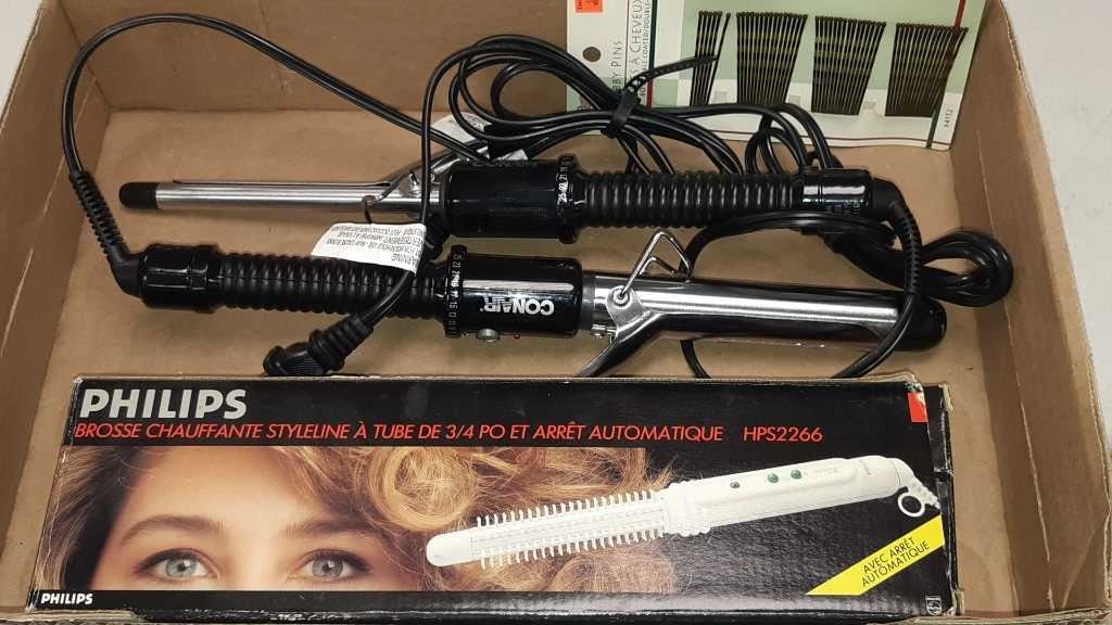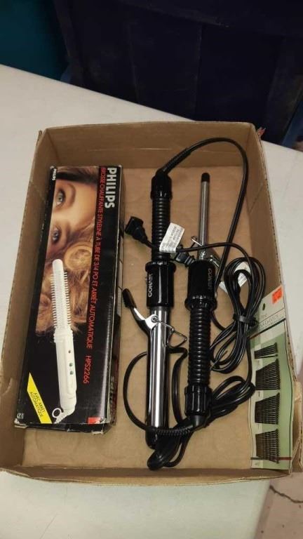 3 curling irons and some bobby pins
