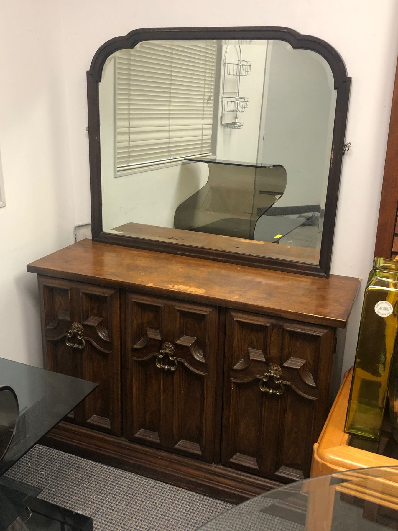 3 door dressing table w/ mirror (w/ mirror approx 42"x14 1/2"x 59")