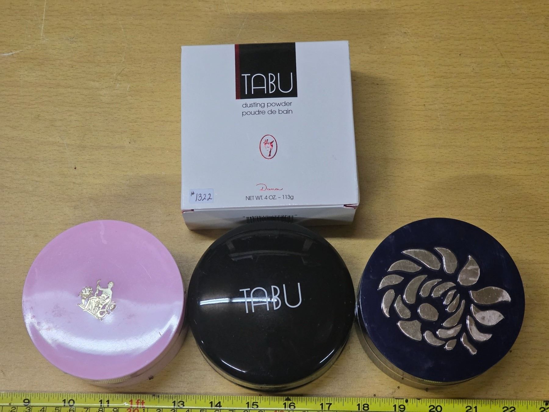 3 dusting power tins-elizabeth arden, lutece, tabu- all mint condition