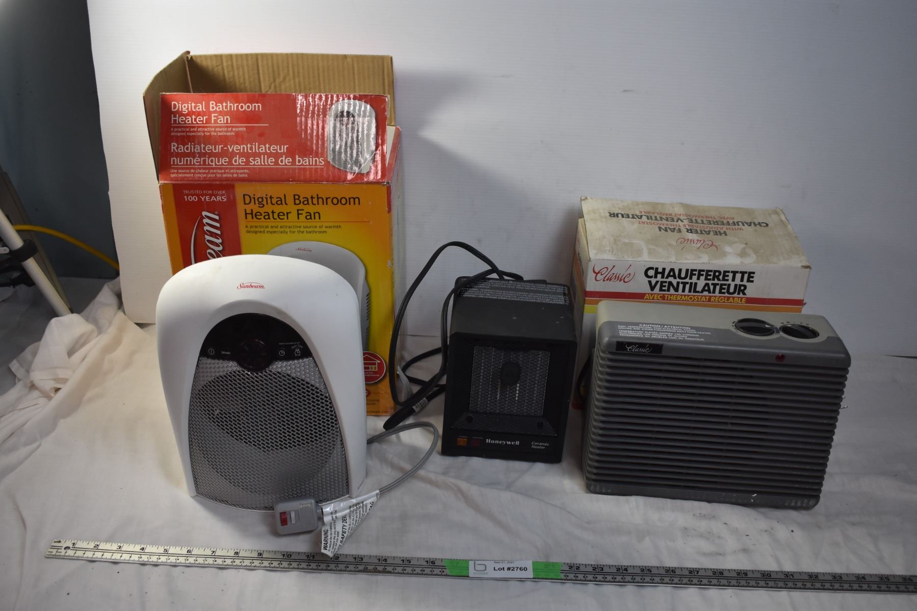 3 electric heaters, one has rattle inside, one fan doesn't spin - Sunbeam one works good