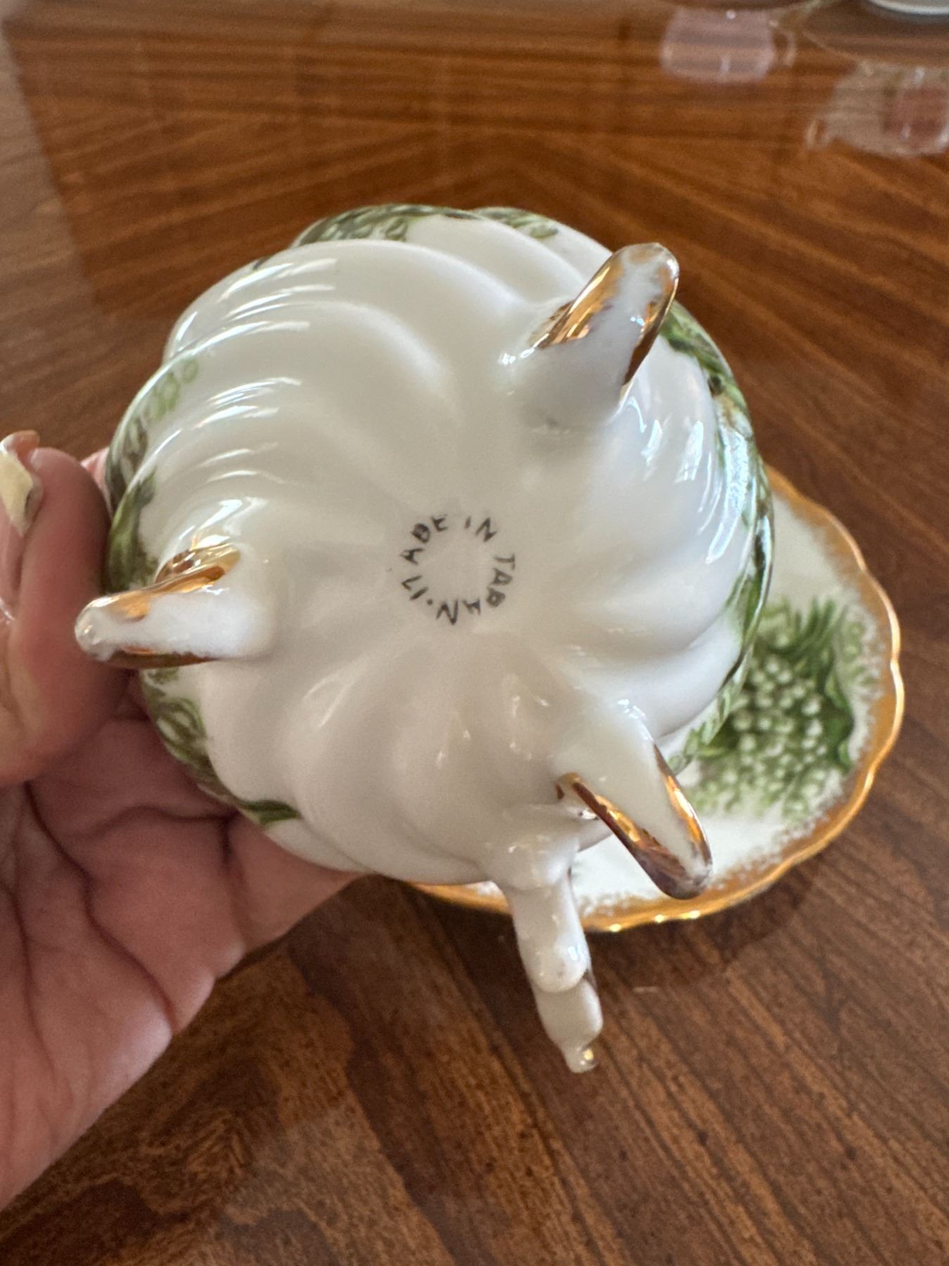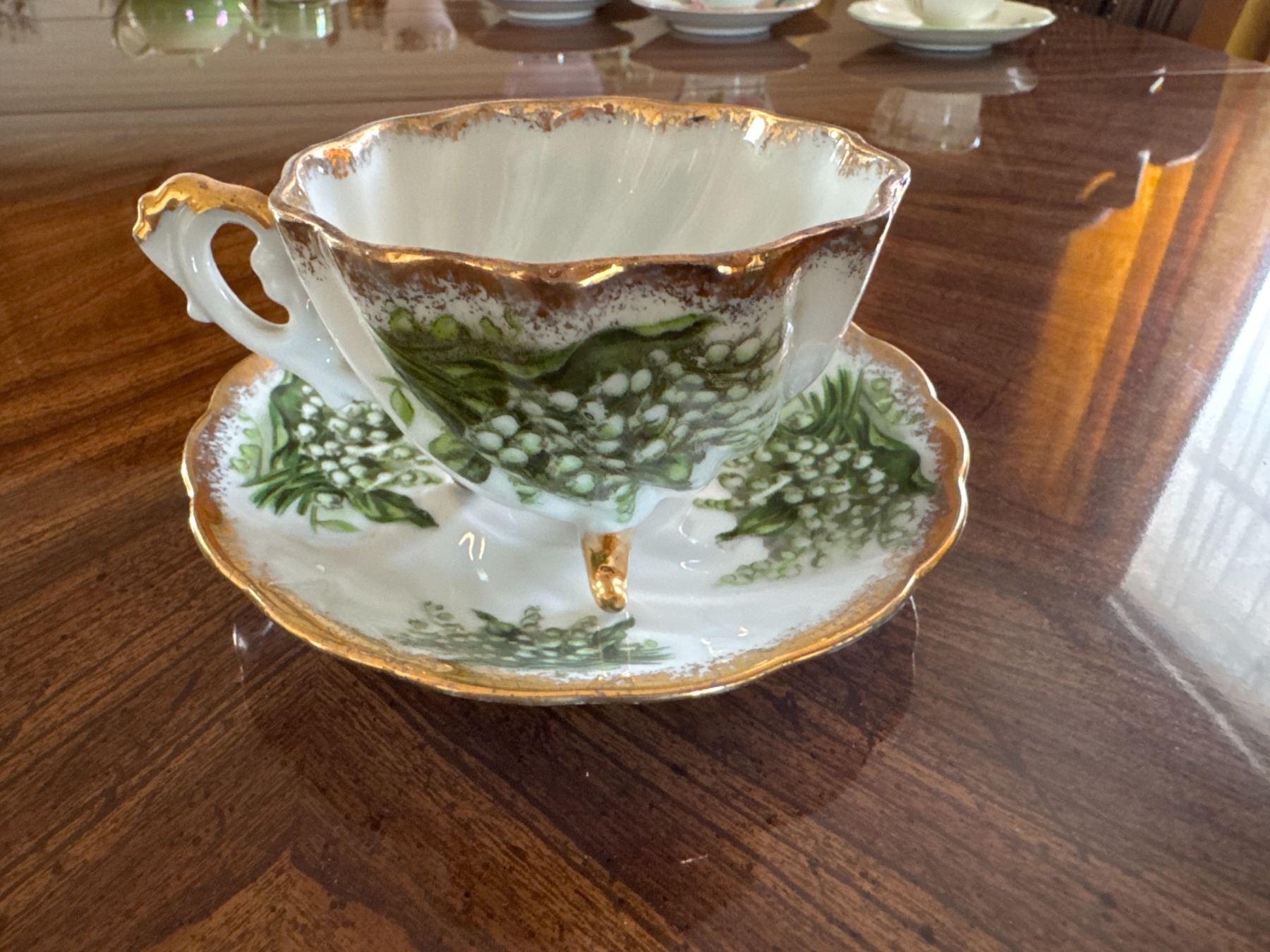 3 footed tea cup with saucer