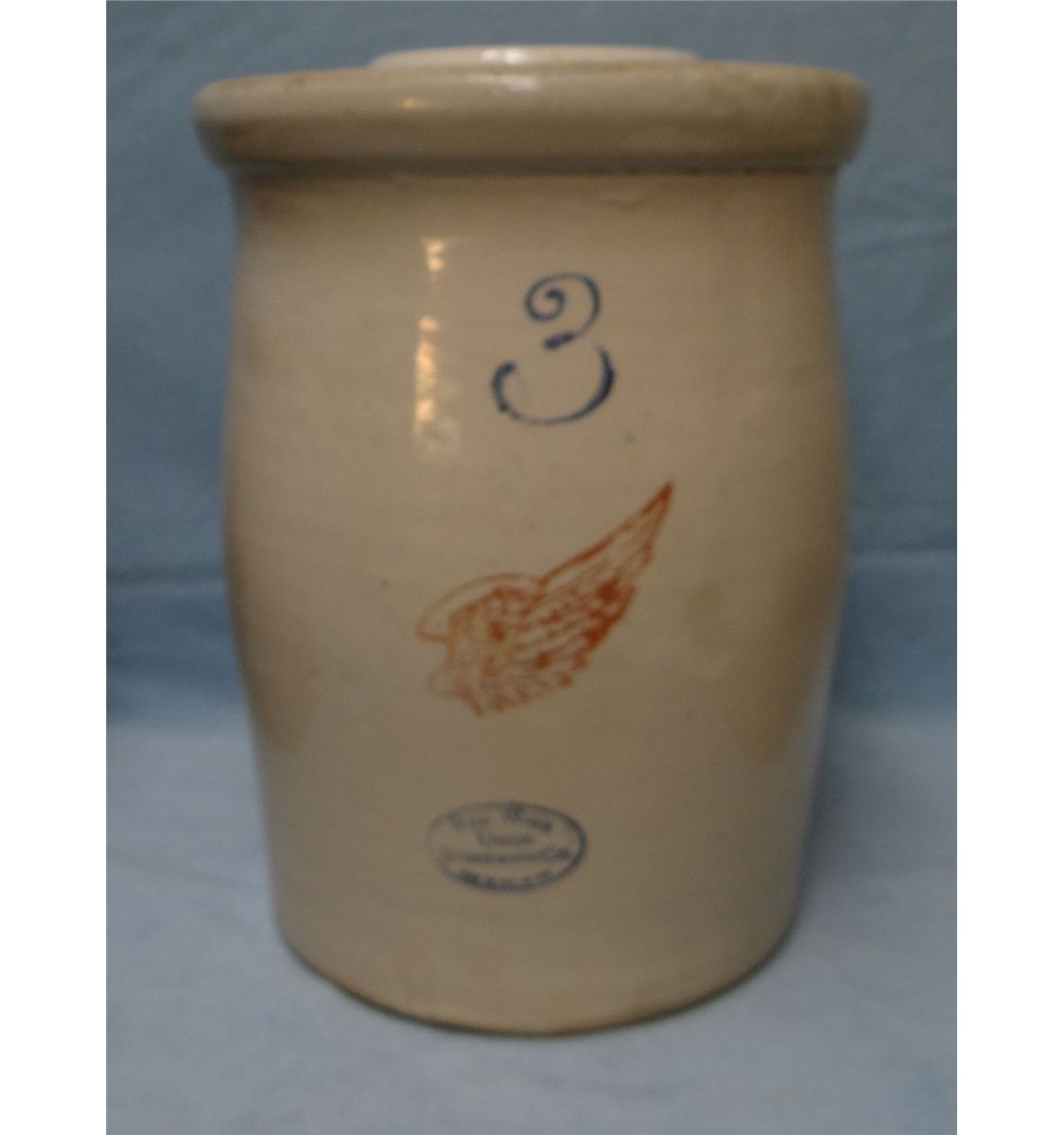 3 gal RW churn w/ lid, 4”wing, small hair line on lid.