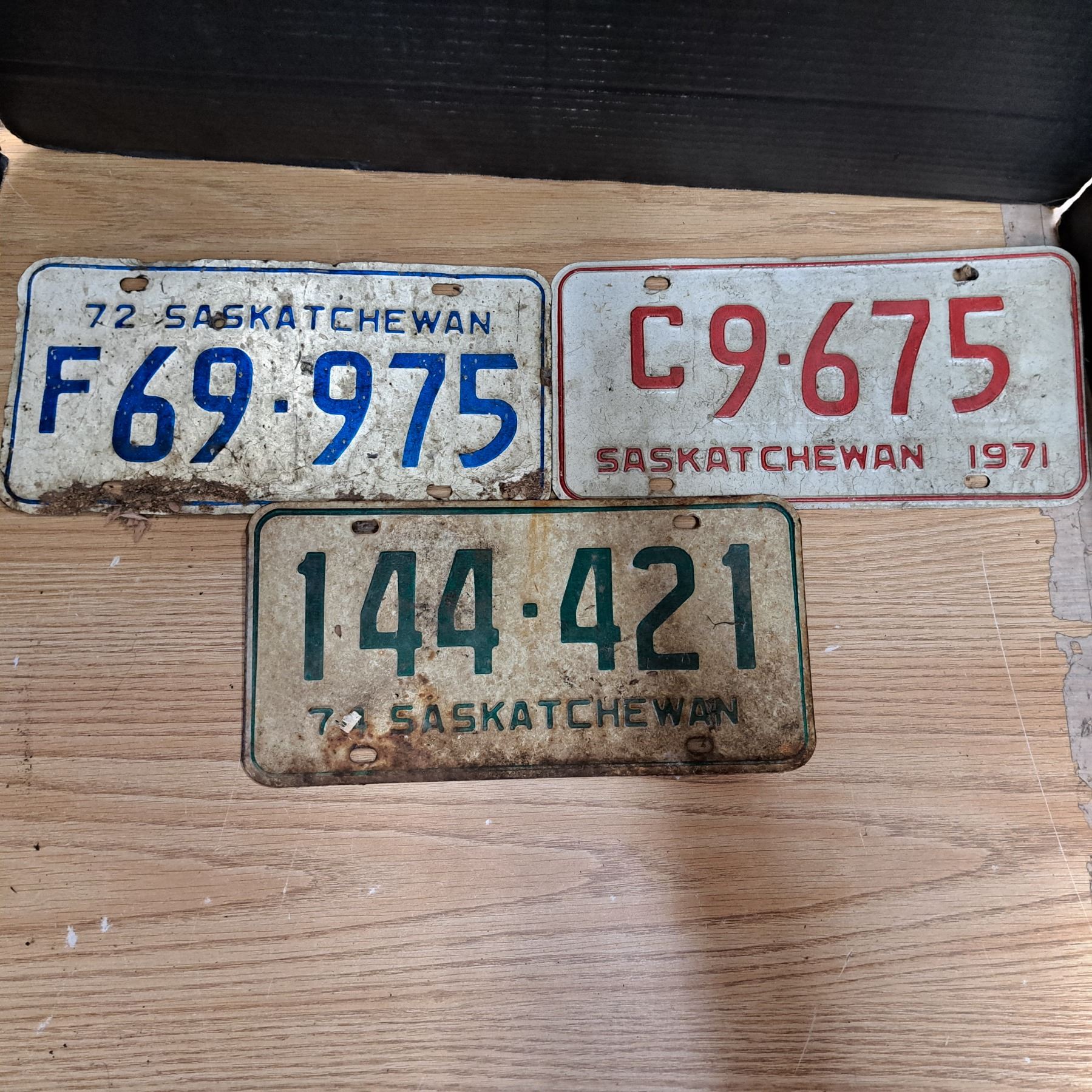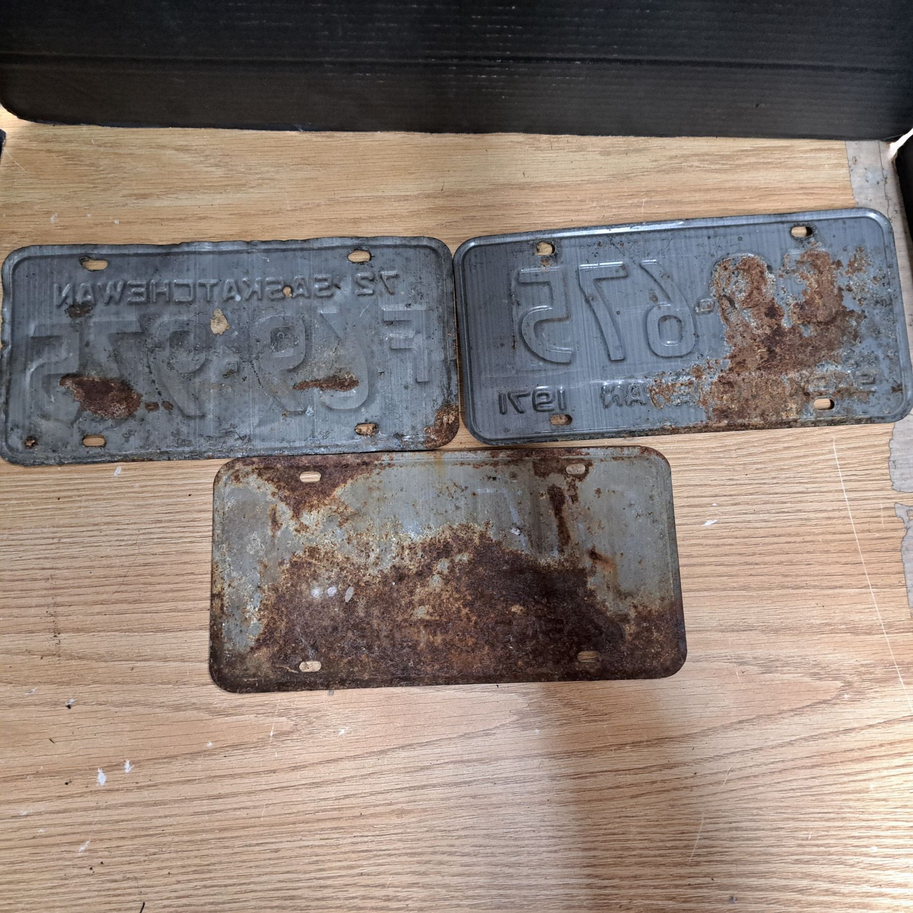 3 licence plates-sask