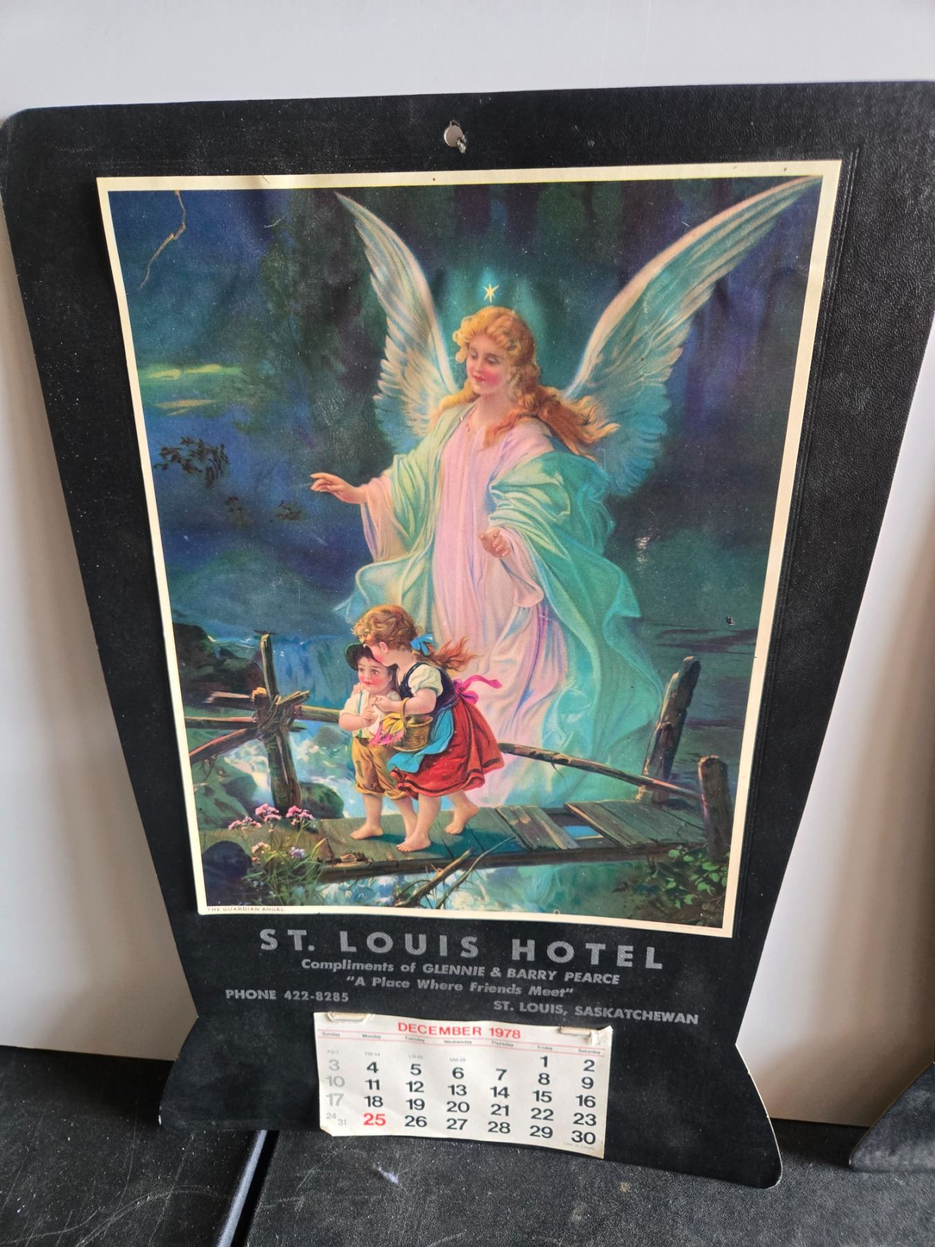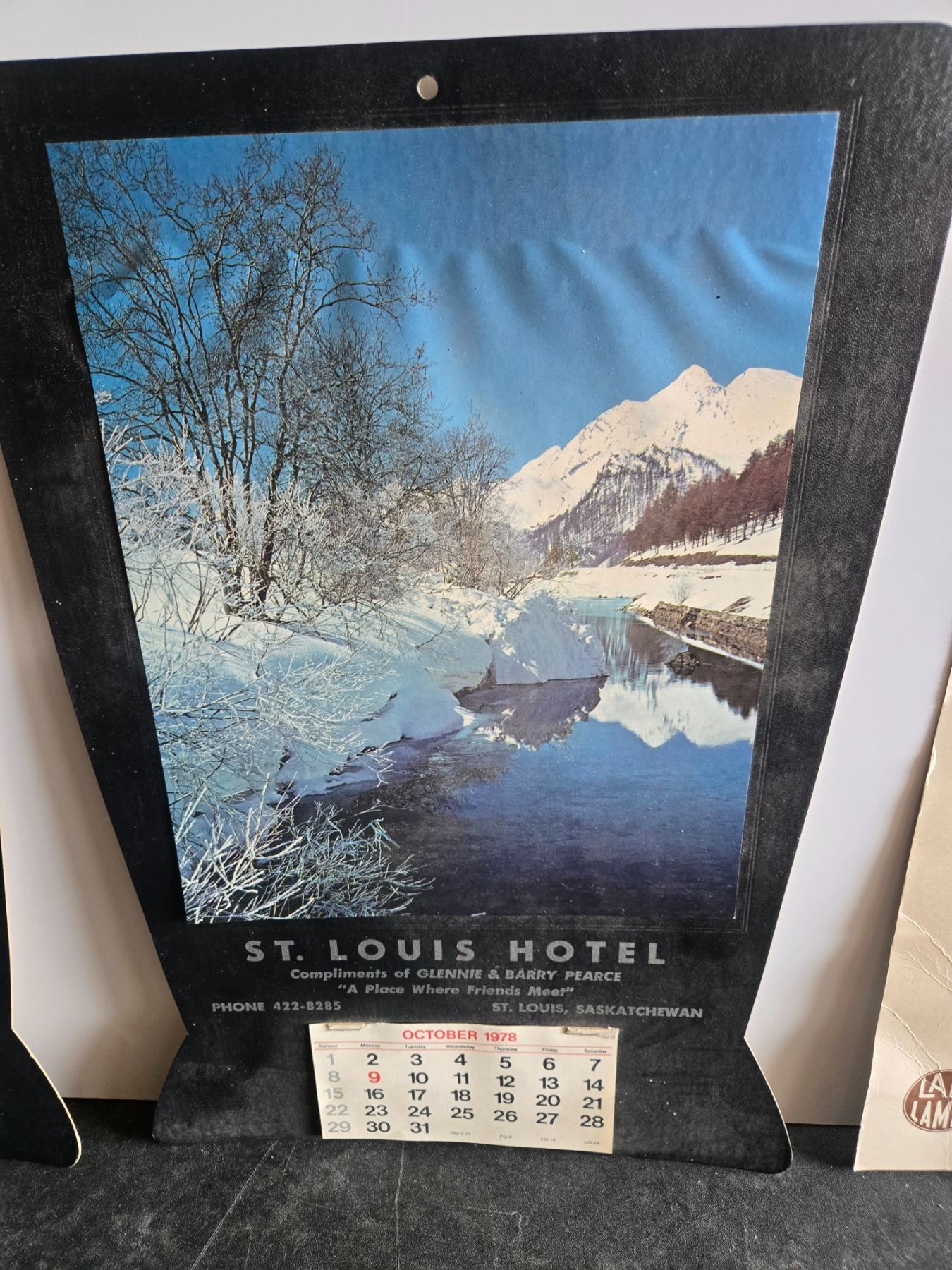3 local collectible calenders-PA hardware 1958- st. louis hotel 1978 (x2, both different)