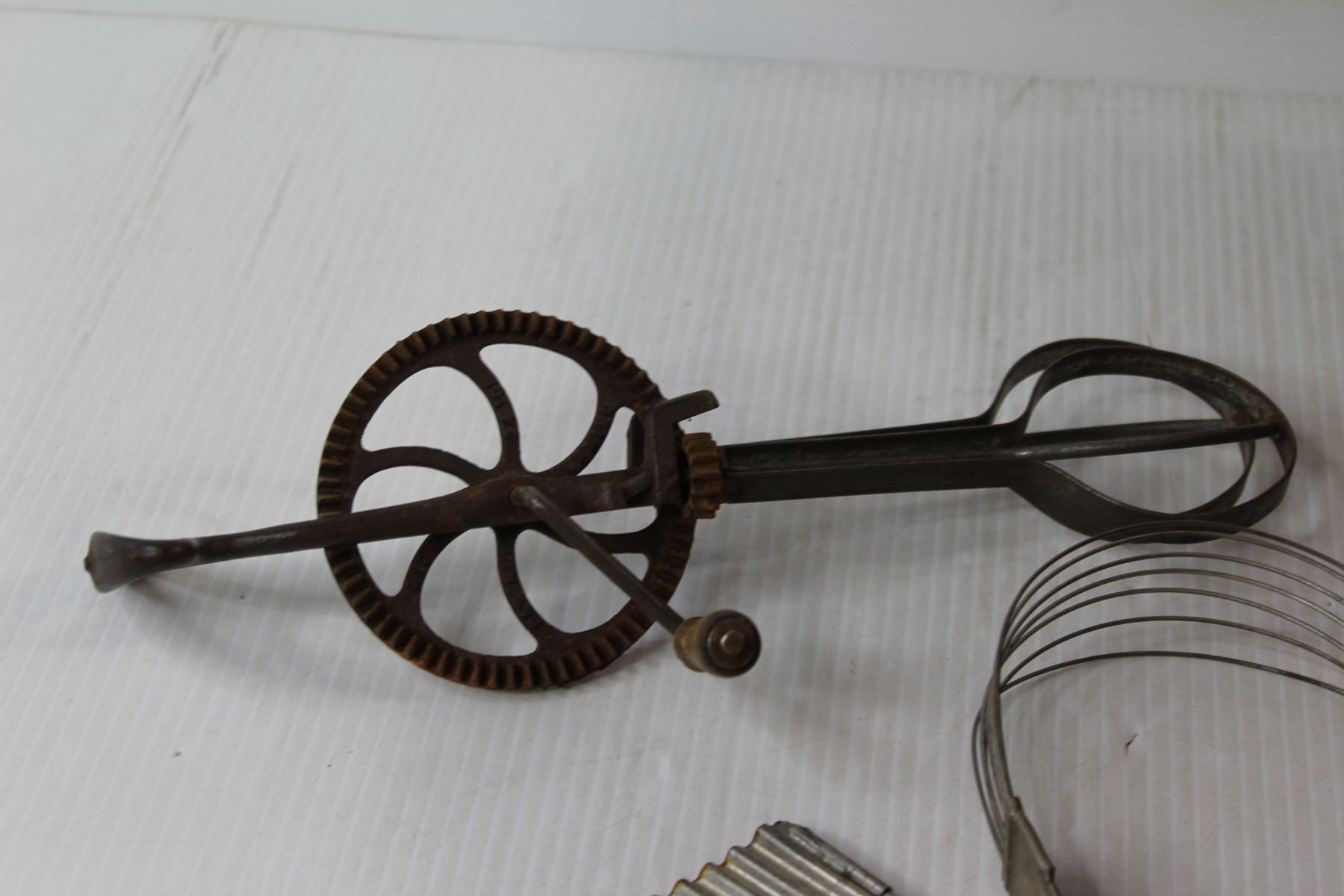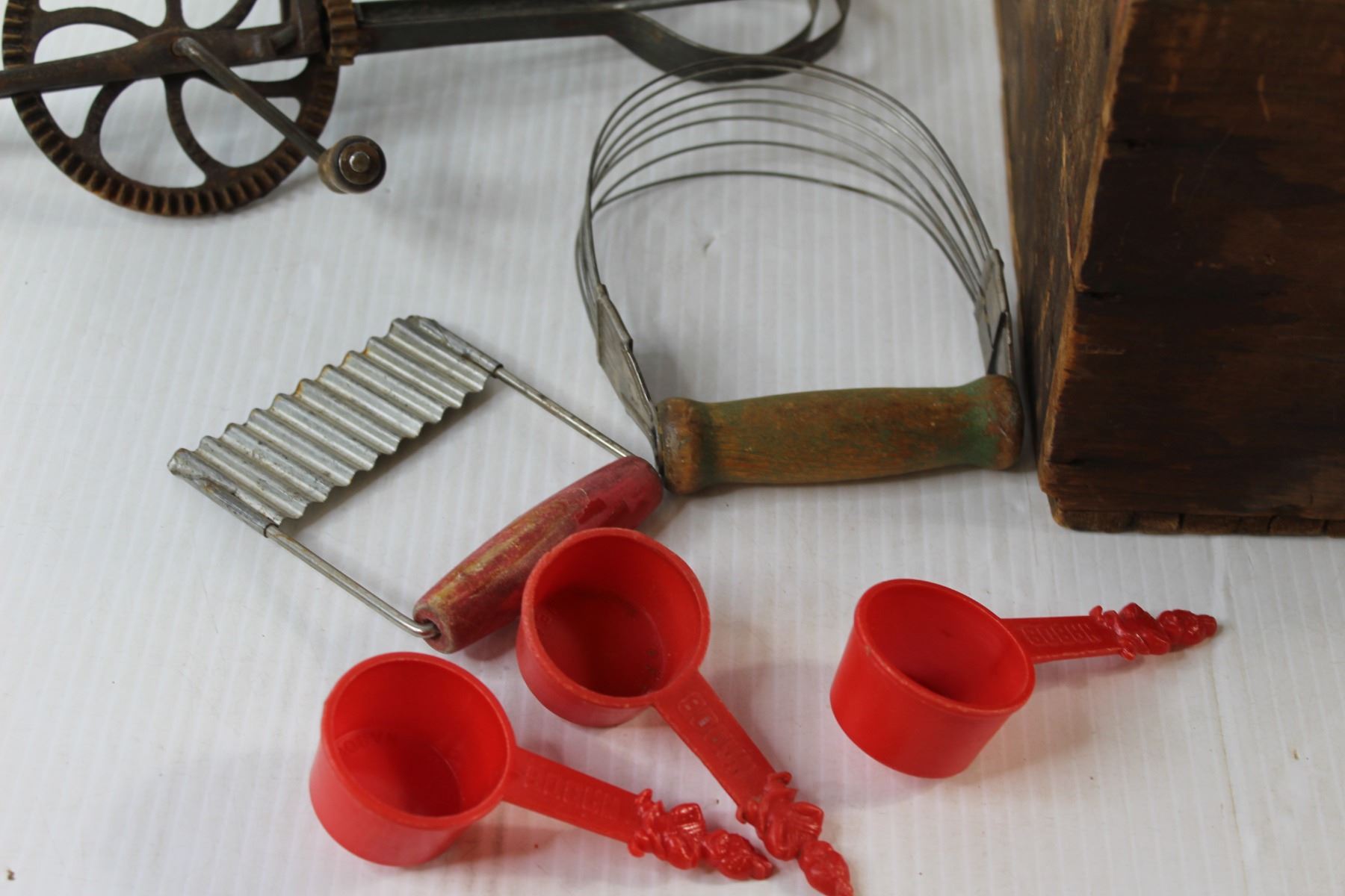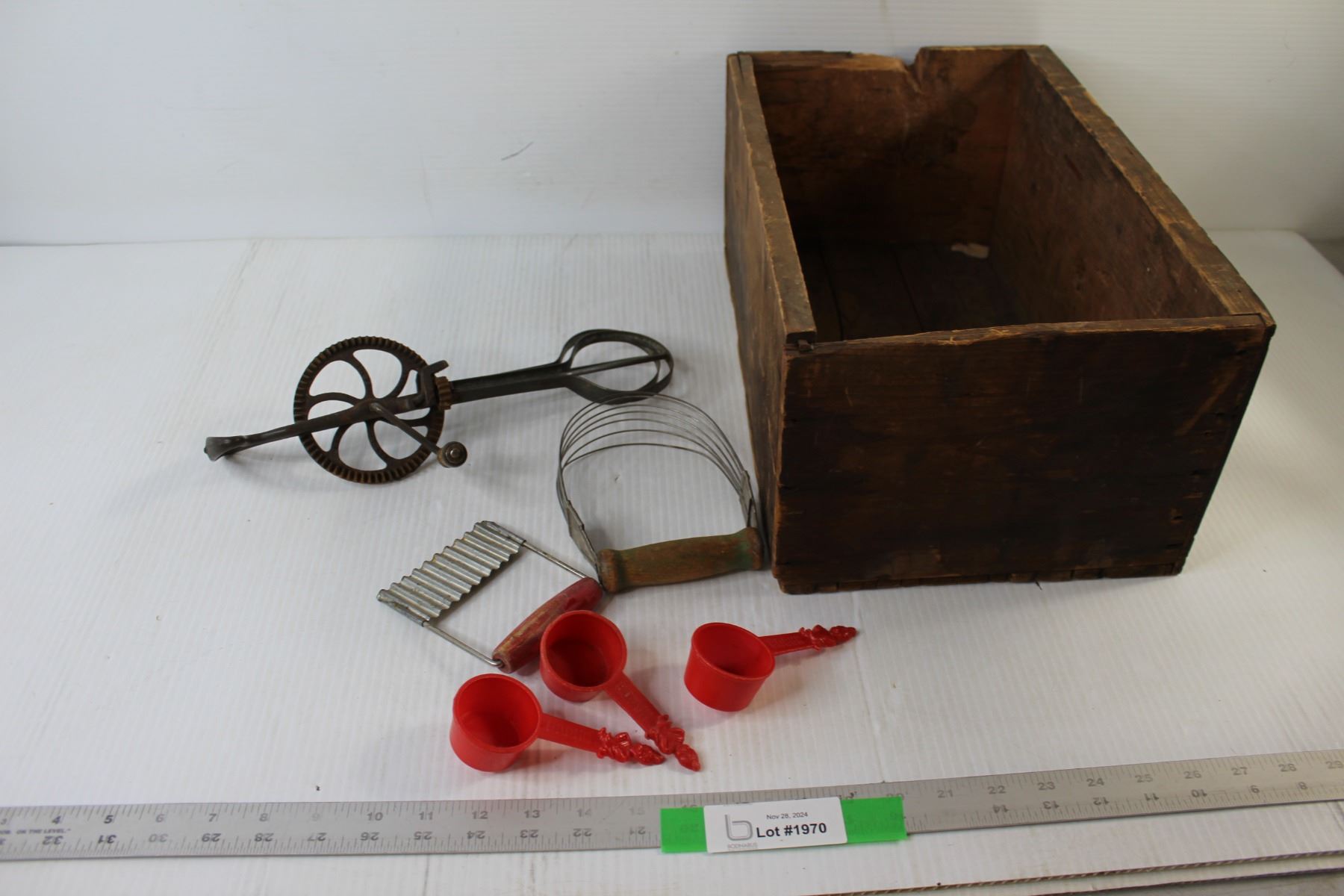 (3) measuring Cups, Hand Spinning Whisk, Wooden Box