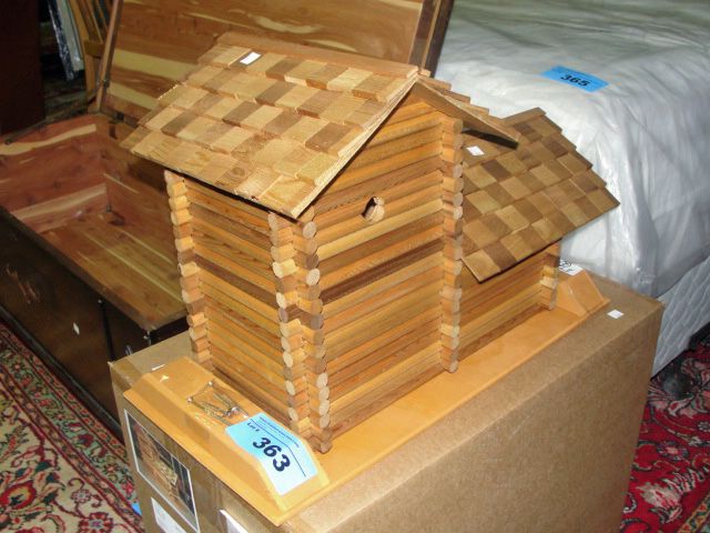 Handcrafted from western red and yellow cedar interlocking logs glued and nailed. Hand made cedar shingles complete unit coated with natural UV protected cedar deck oil. Complete with post brackets