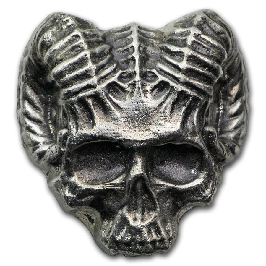 3 oz Hand Poured Silver - Devil Ram Skull