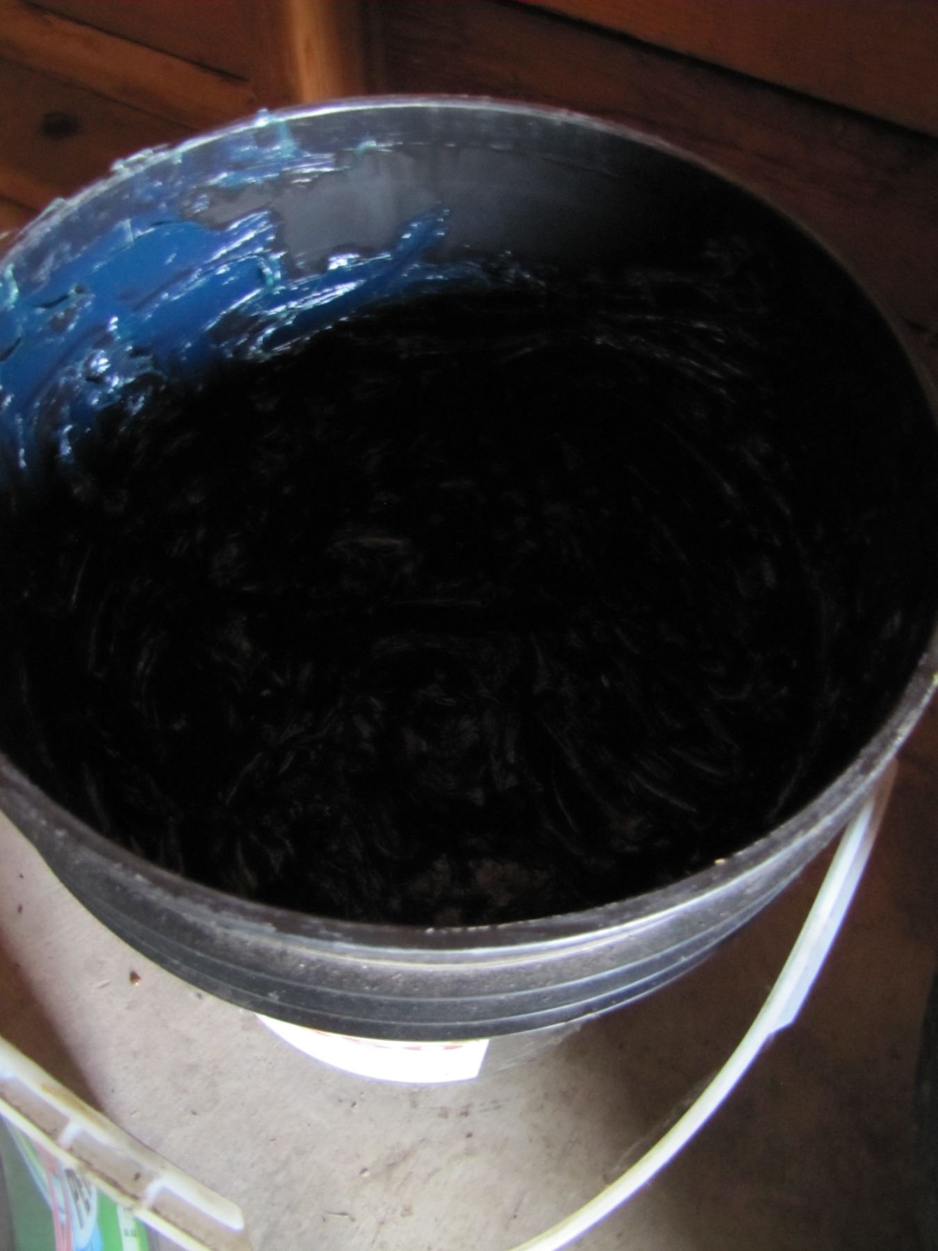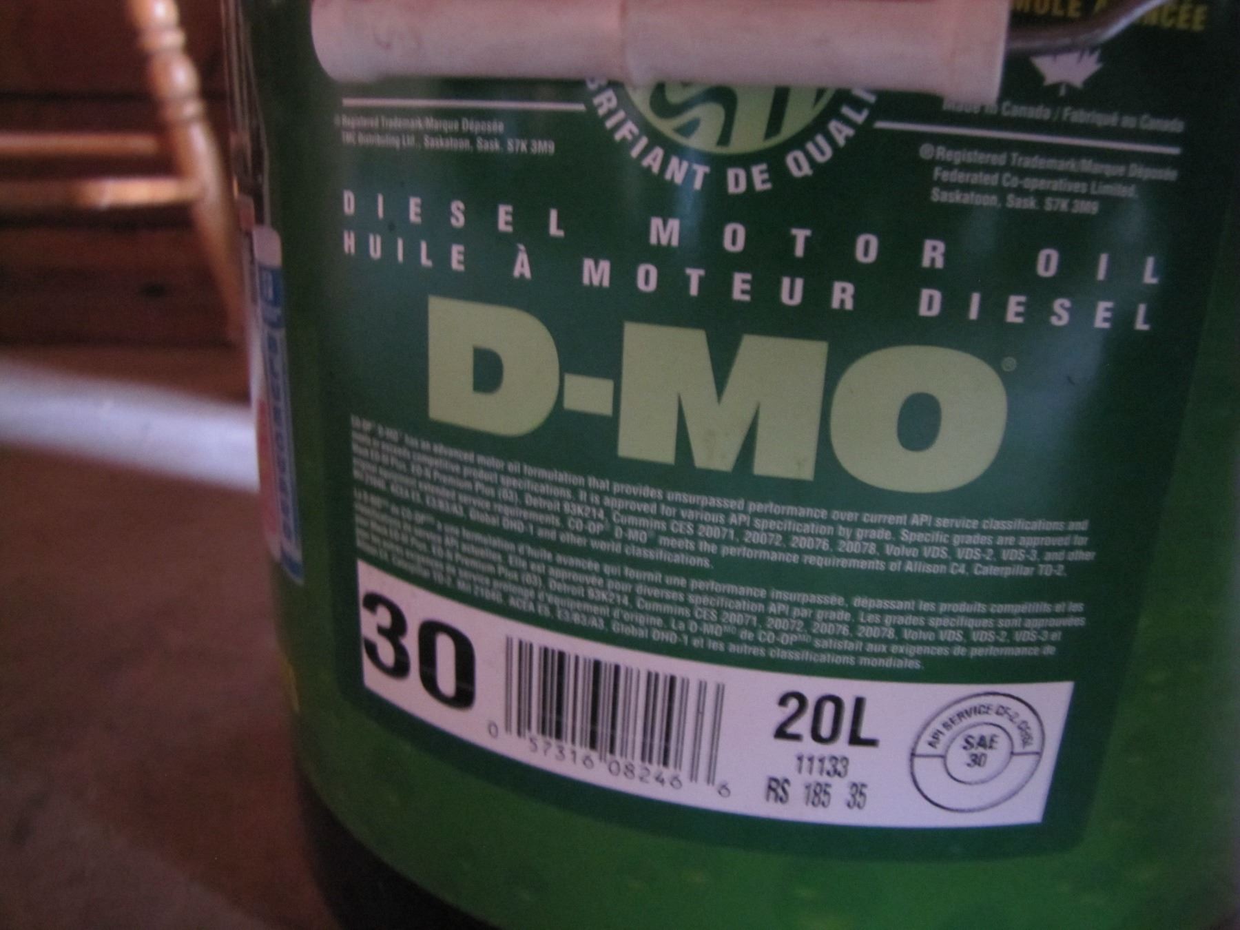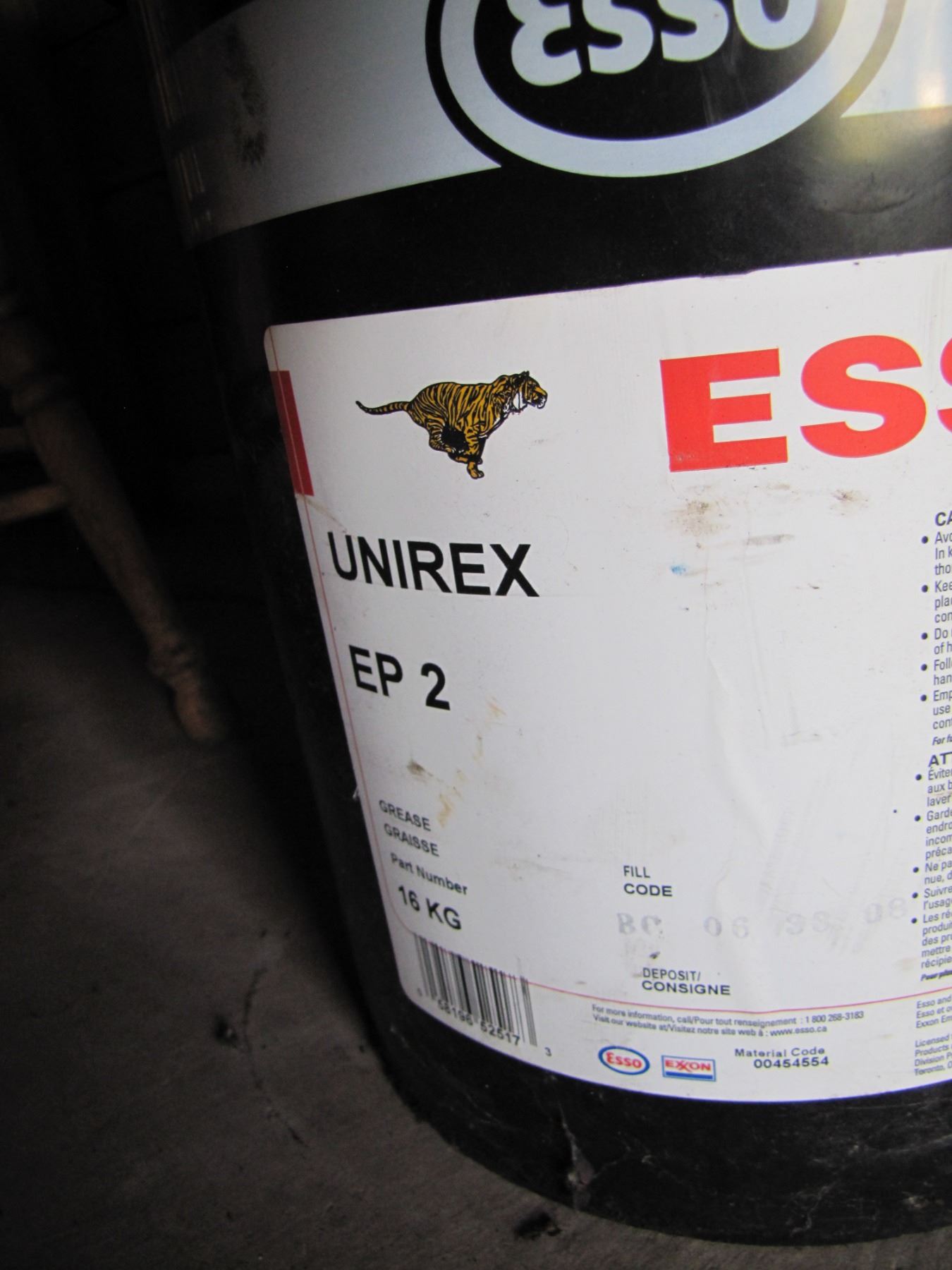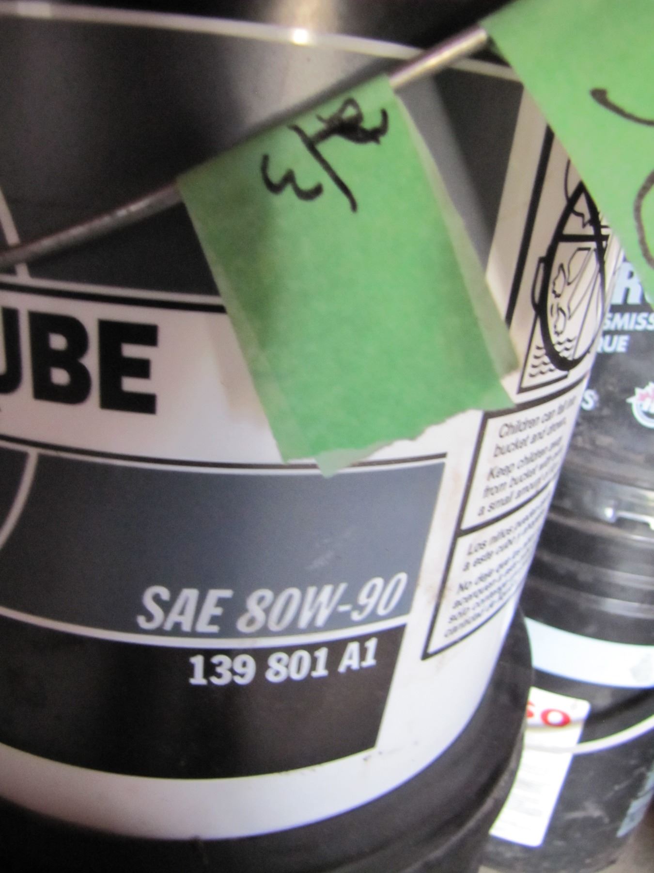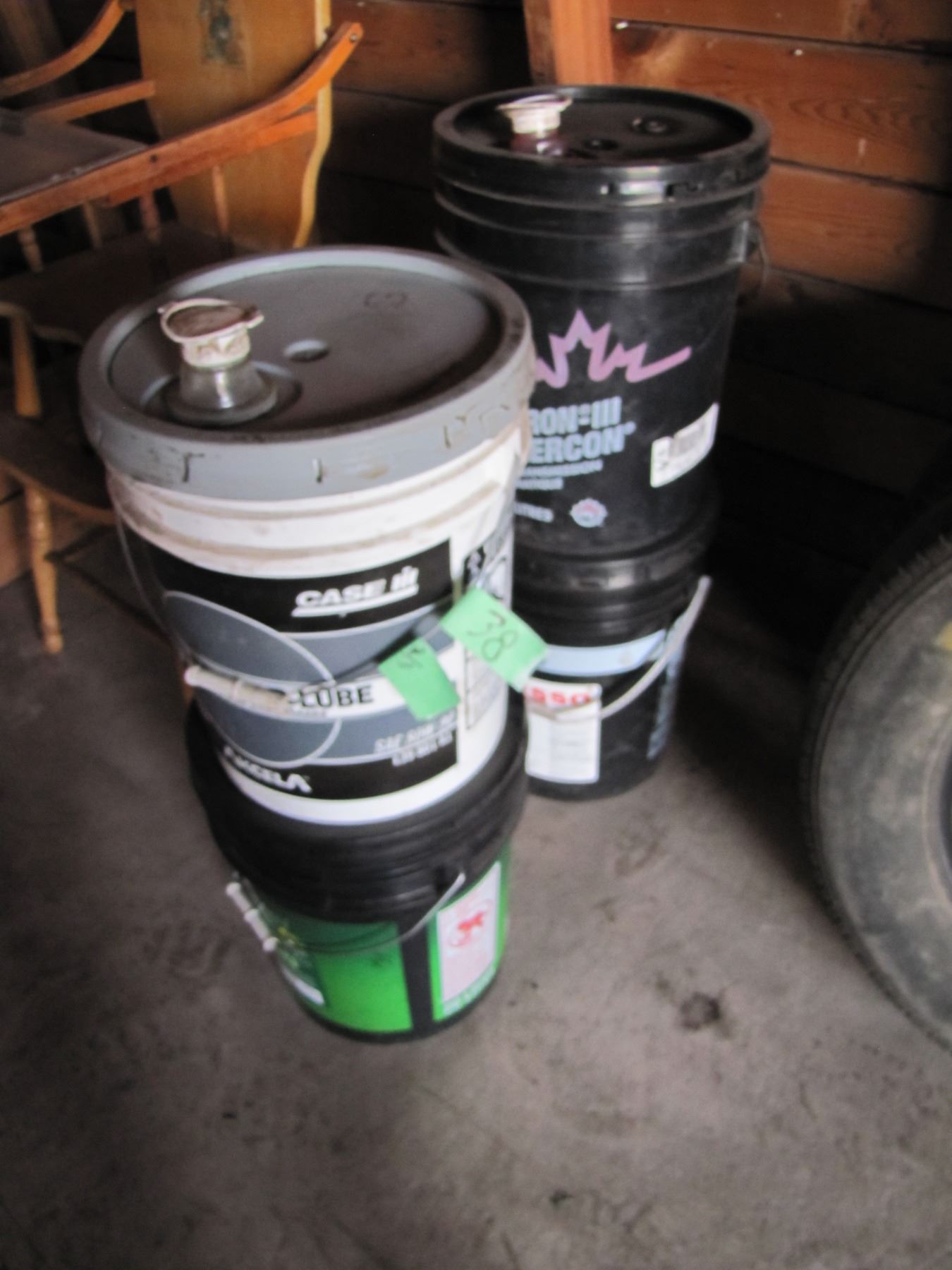 3 pails of oil and one of Grease qualities marked on side. grease pail is about half-full