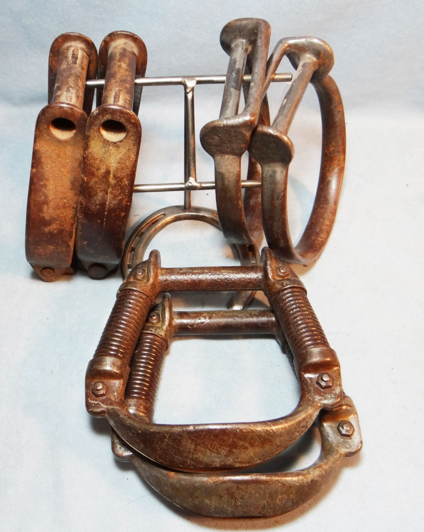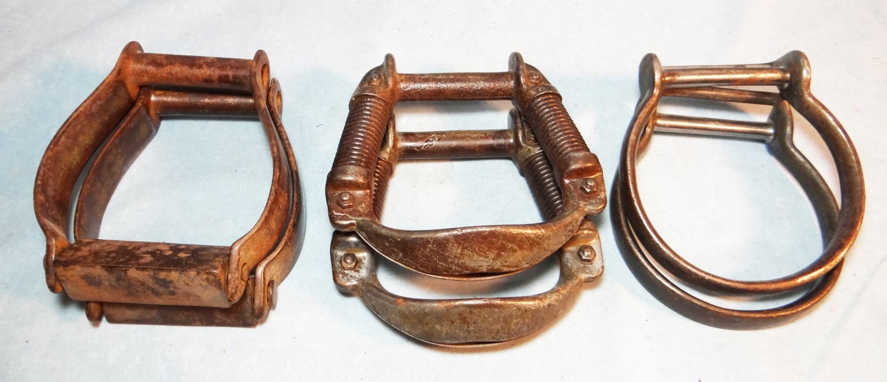 (3) pair vintage iron stirrups