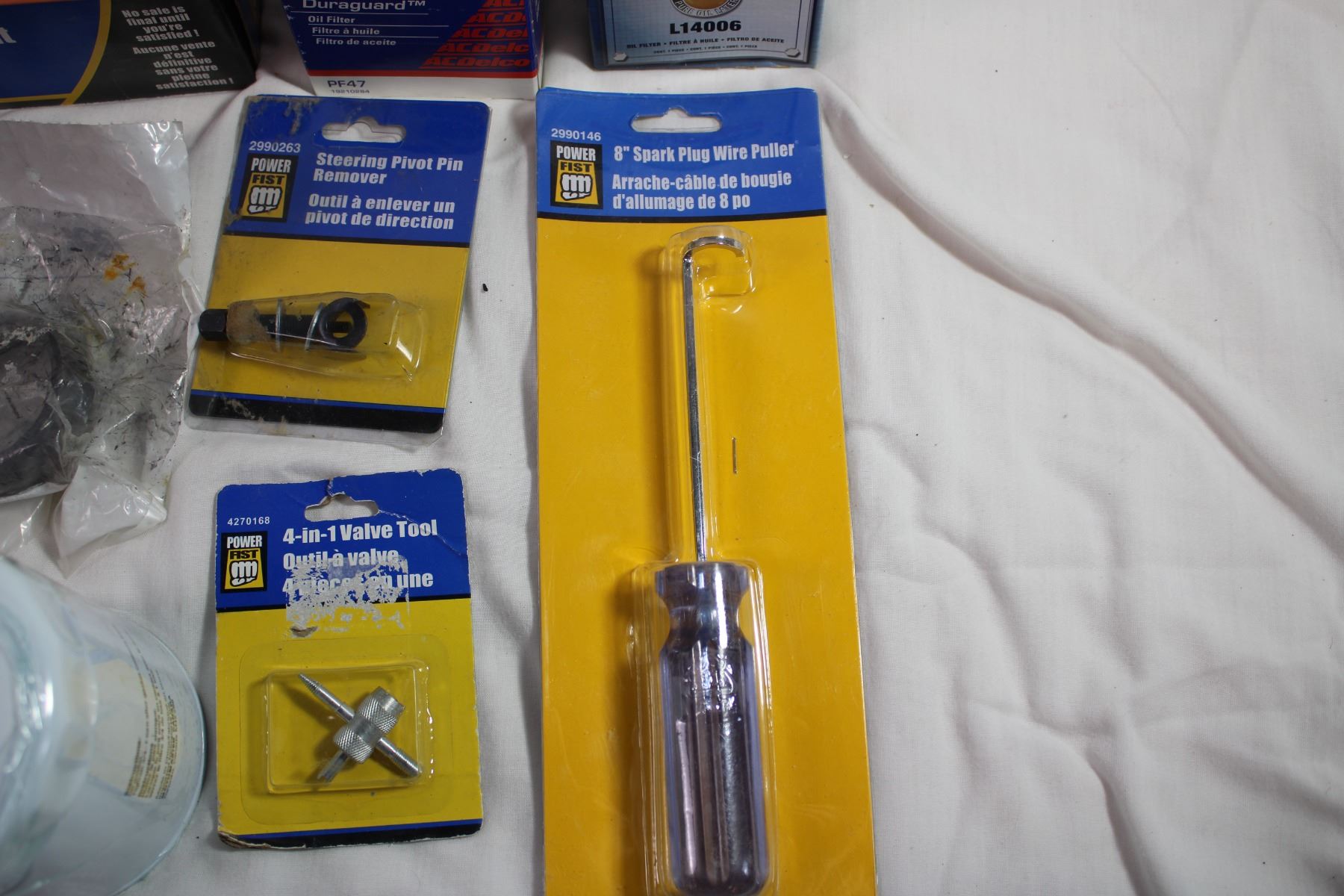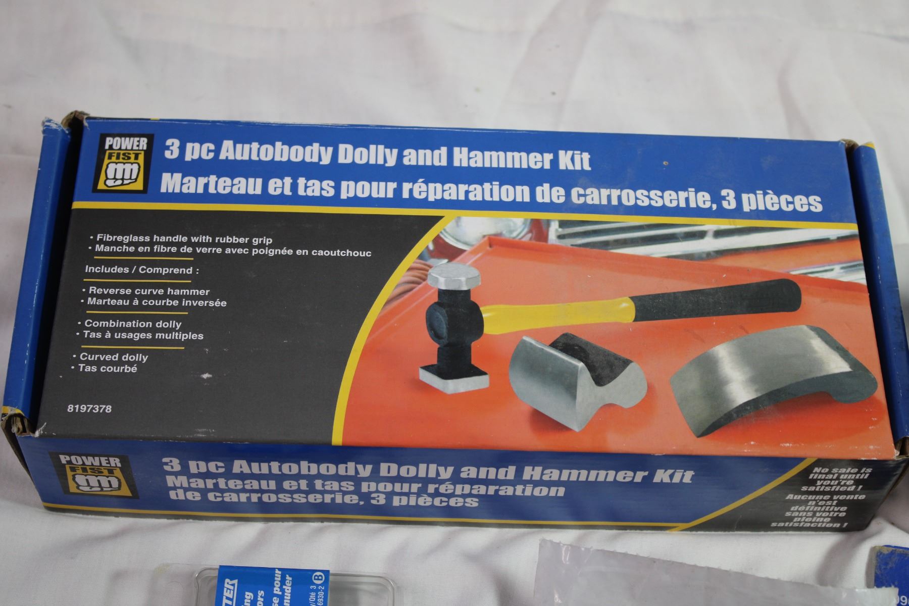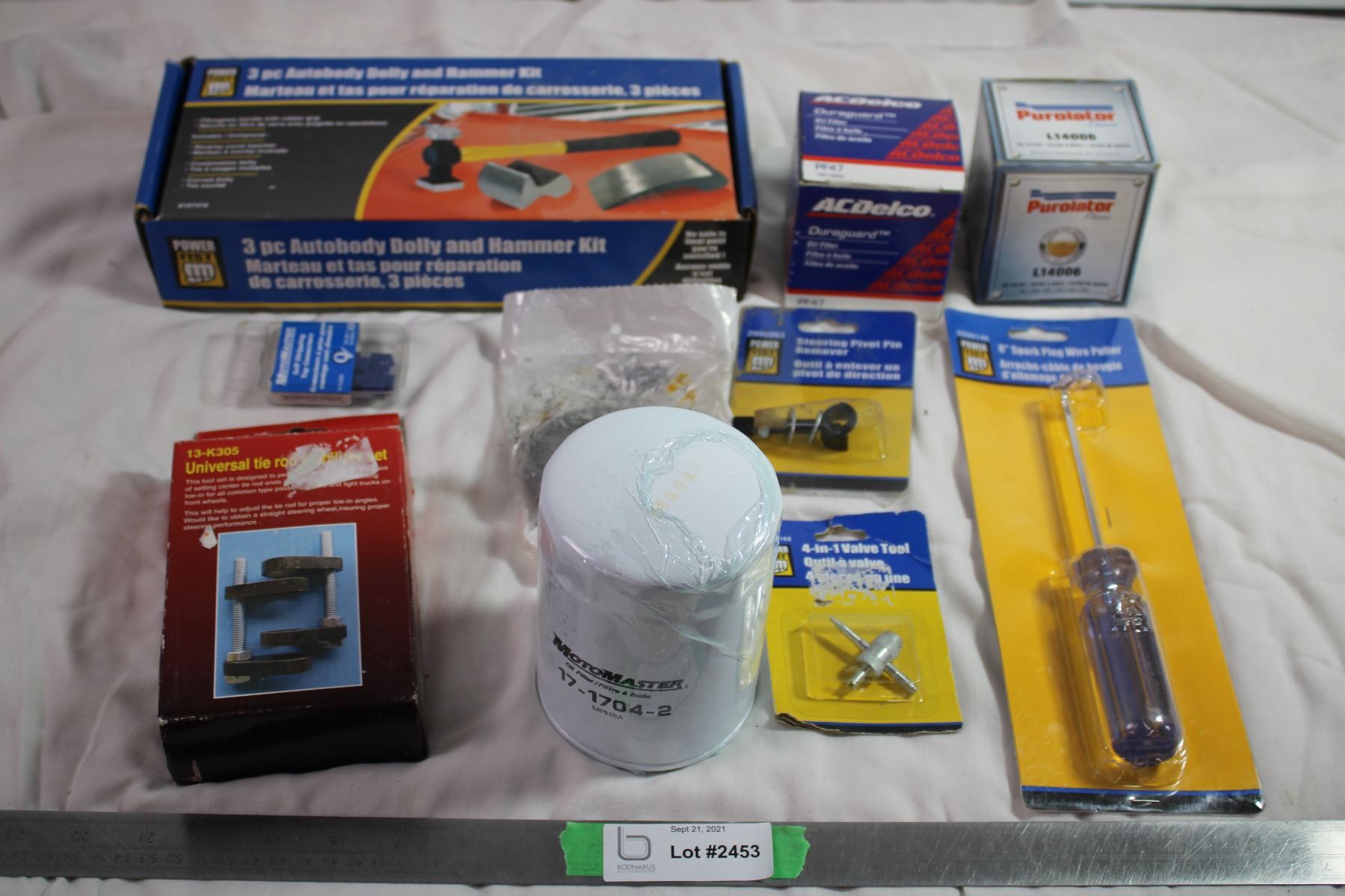 3 pc Autoboty dolly and hammer kit + vehicle filters + tap connectors + spark plug wire puller + other misc items