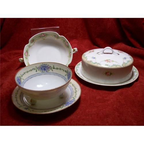 Very fine Nippon for the collector...a old soup bowl...a very fine egg shell tea cup and saucer...& a fine and rare pancake with lid...all very much alike in their style...I would like to see this set go to a nice home so I priced it accordingly...thankyou for looking
