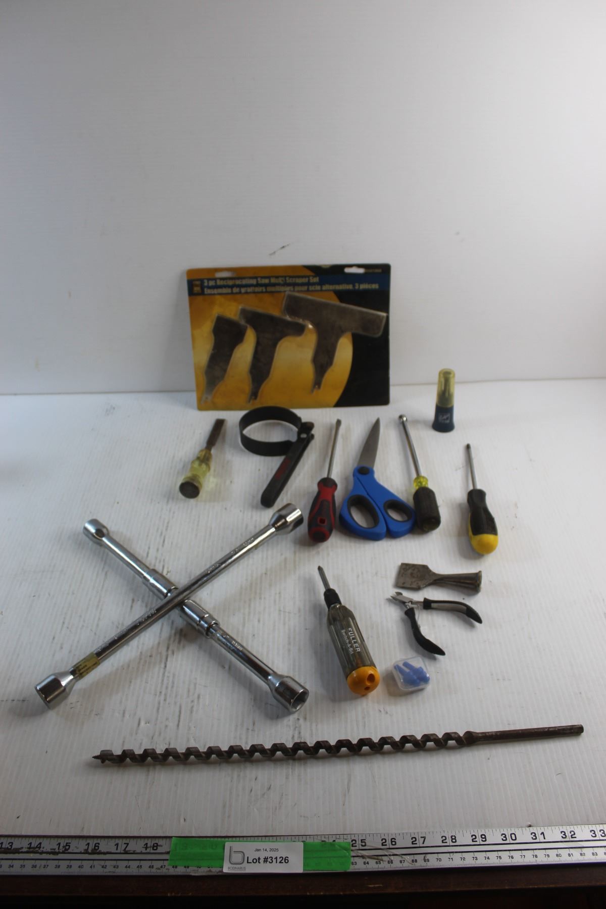 3 pc Reciprocating Saw Multi Scraper Set, Tire Wrench, Screwdrivers, Chisel and Wire Cutters