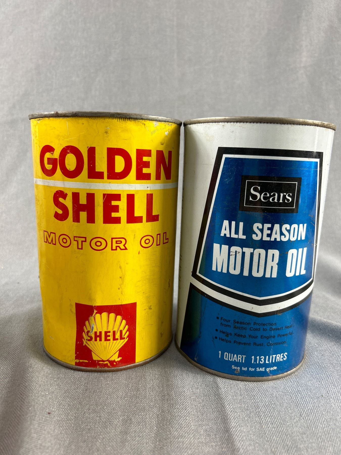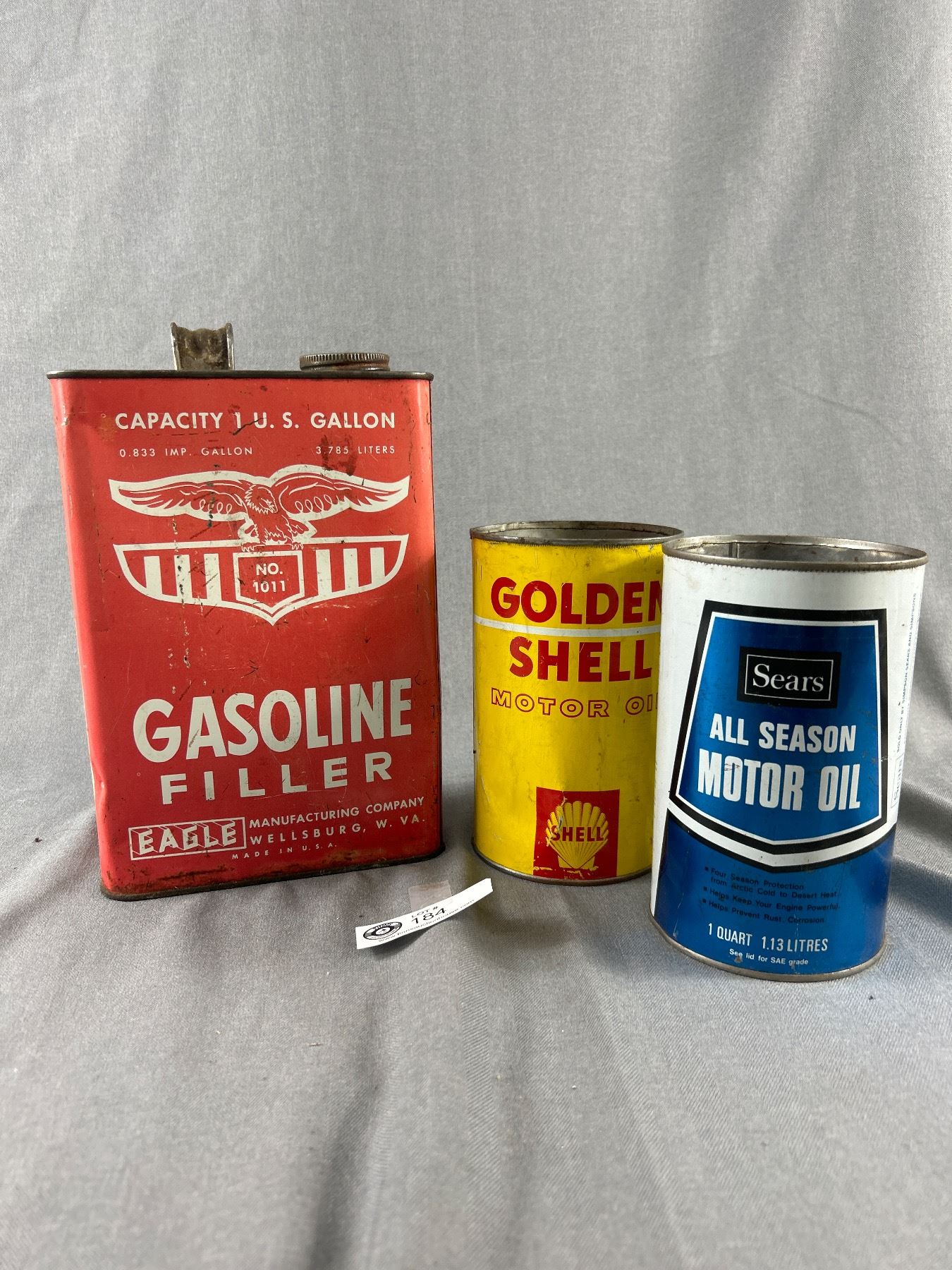 3 pc Vintage Eagle Gasoline 1 Gallon Can and Shell Allstare Quart Cans, No Lids