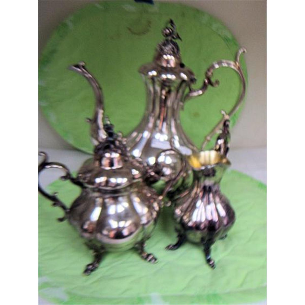 3 pc silver plate tea set - marked - Reed an Barton - 1796 - Winihrop - footed - leaves and pumpkins