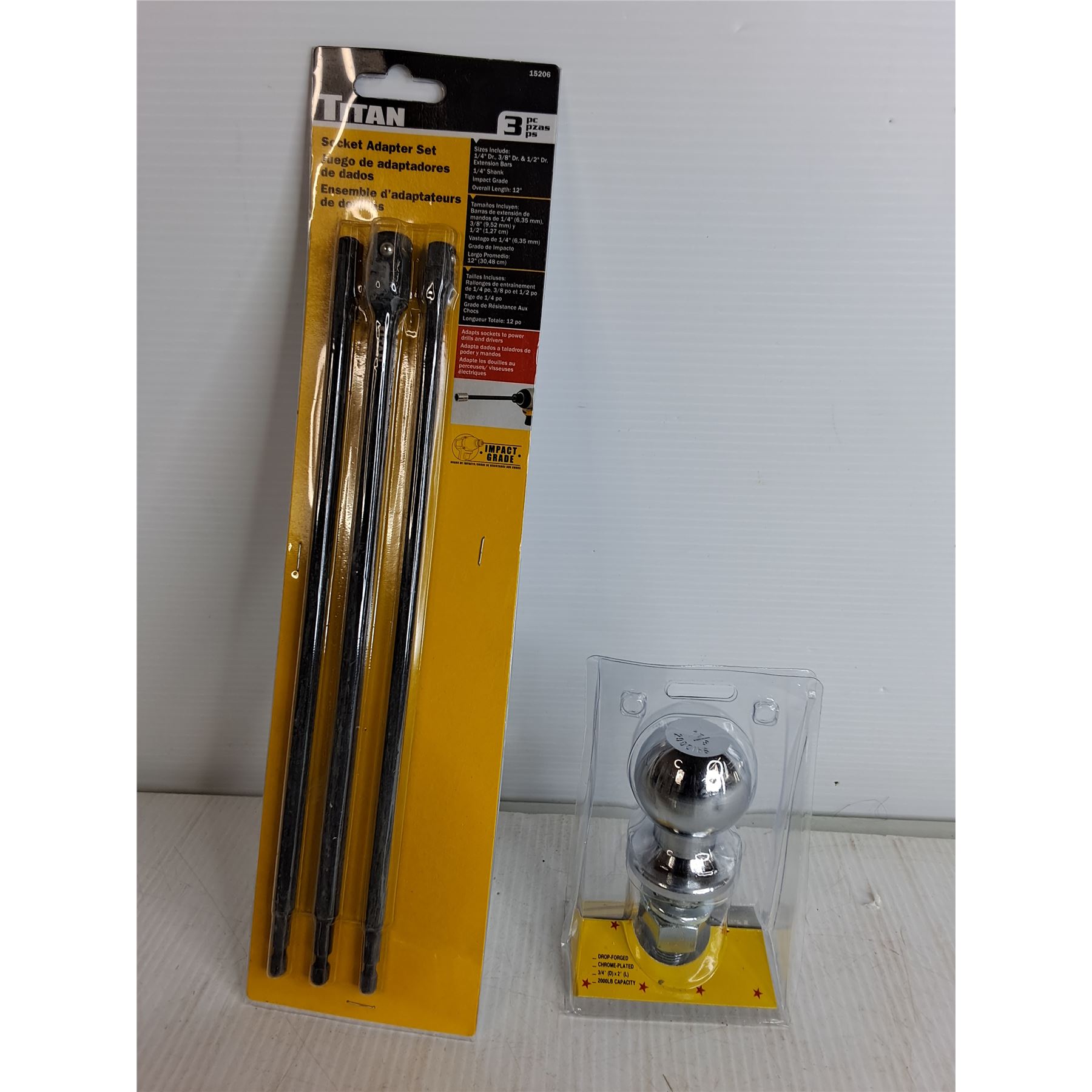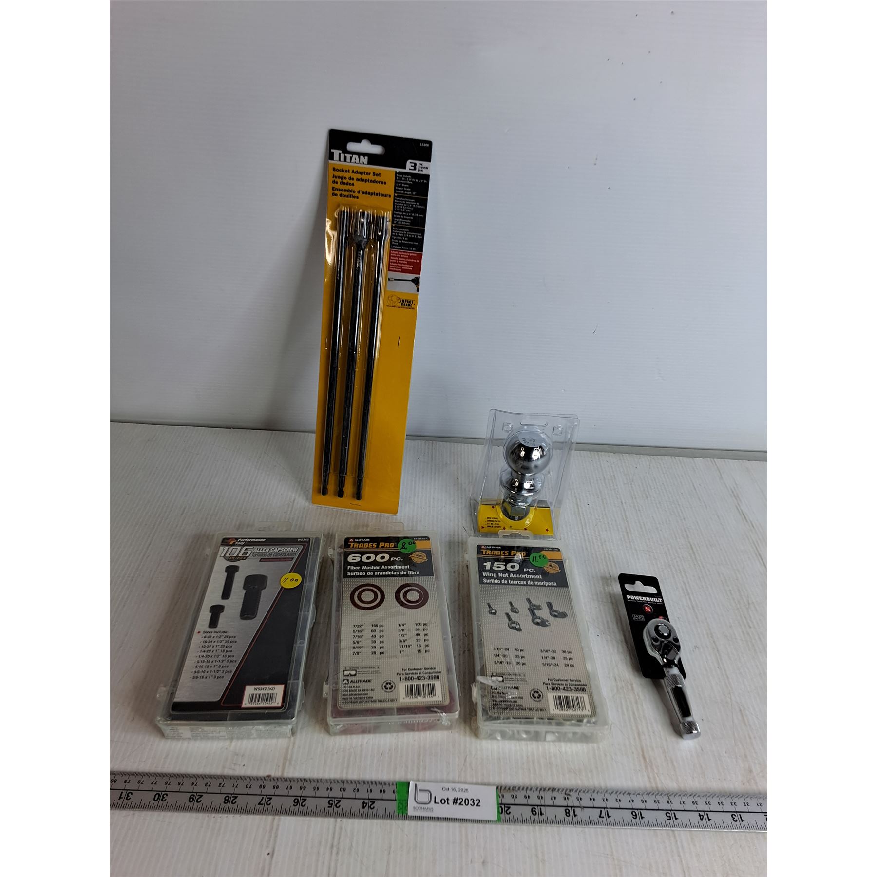 3 pcs Socket Adapter Set, 1-7/8 Trailer Ball Hitch, Capscrew Set, Washer Assortment Set, Misc