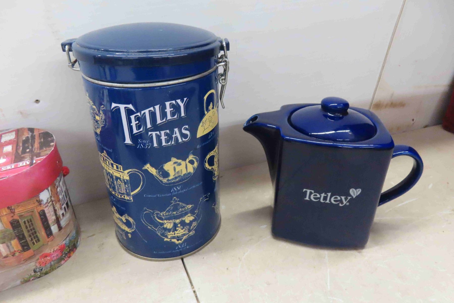 (3) pcs Tetly Tea - 1 Very Nice Teapot, 2 Cans, 2 Porcelin