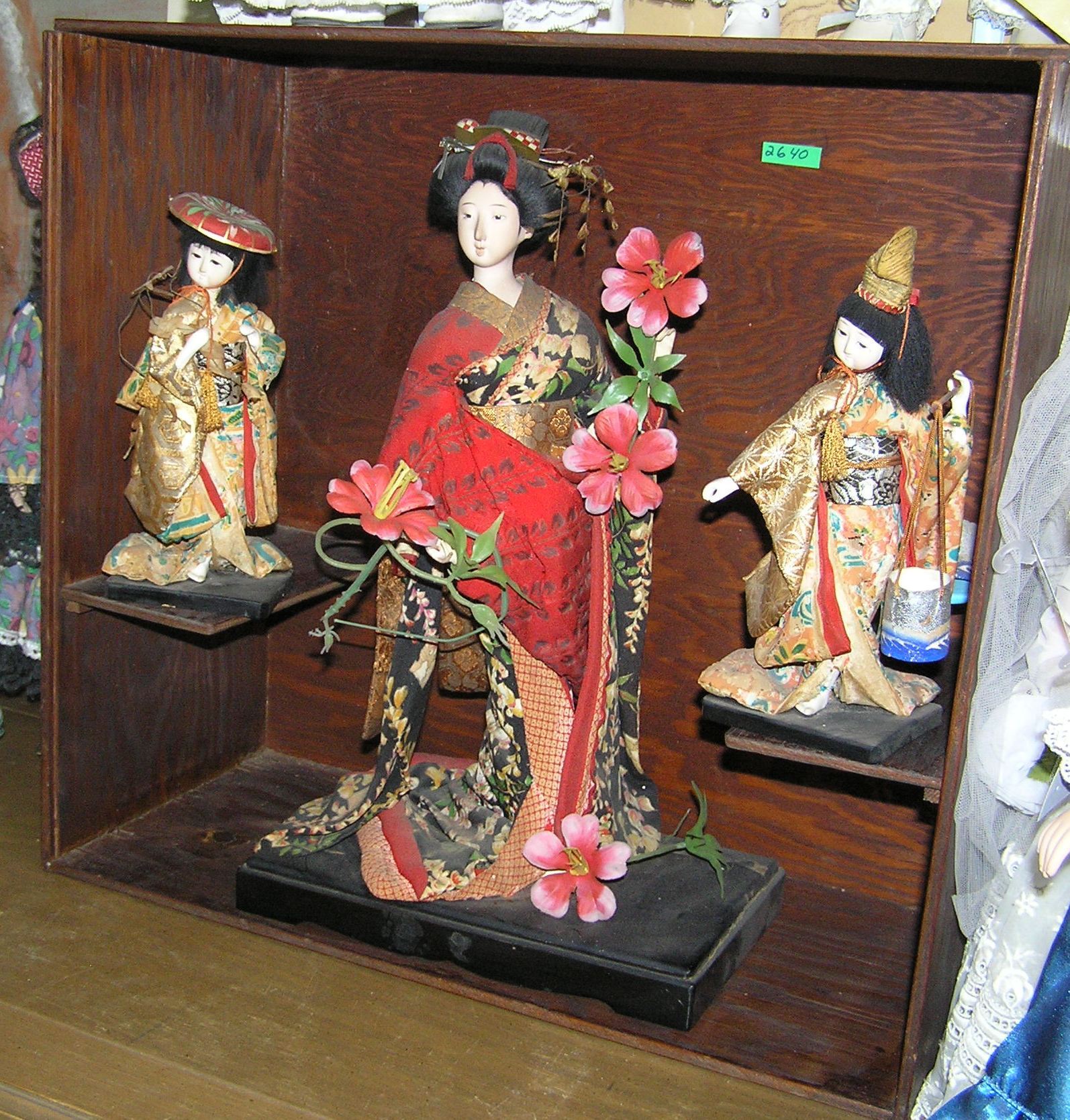 3 piece Asian doll diorama with case est. value $1200.00-$1500.00