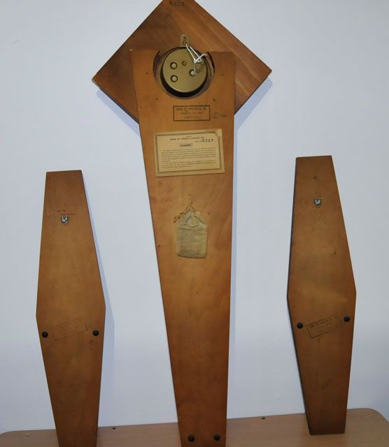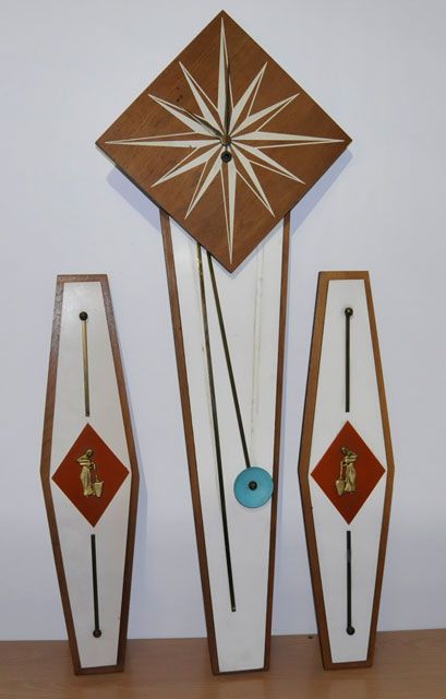 Losses to one sconce. Middle clock approx. 37" H, side pieces 23". Please read our terms of sale.