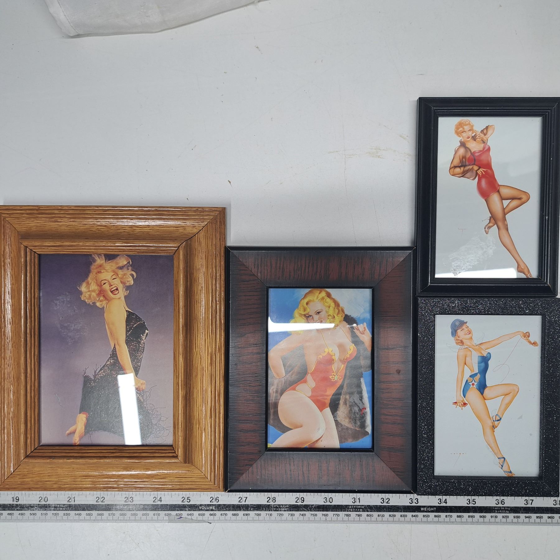 3 pin up girs in frames, 1 marilyn monroe picture and book