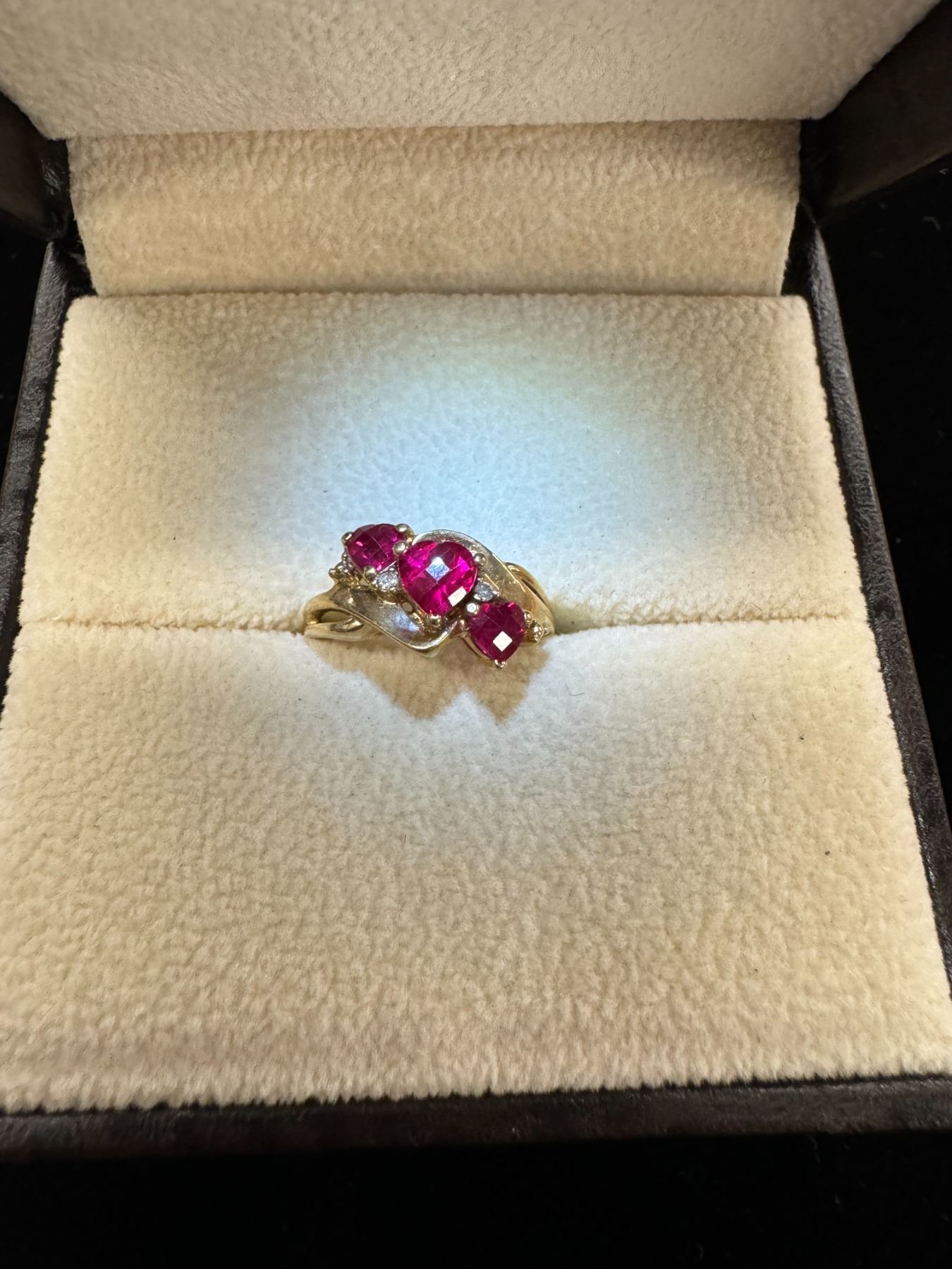 3 red hearts ring 10k 2.4g